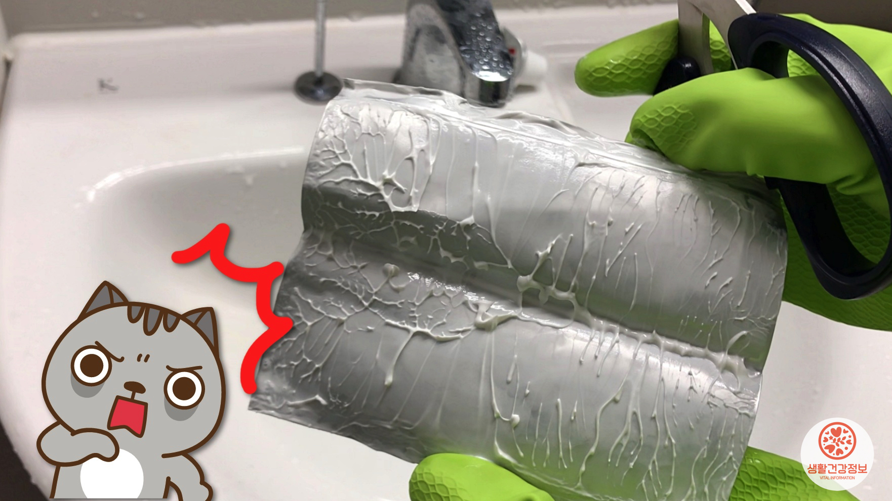 먼저 다 쓴 치약을 가위로 잘라 주세요.