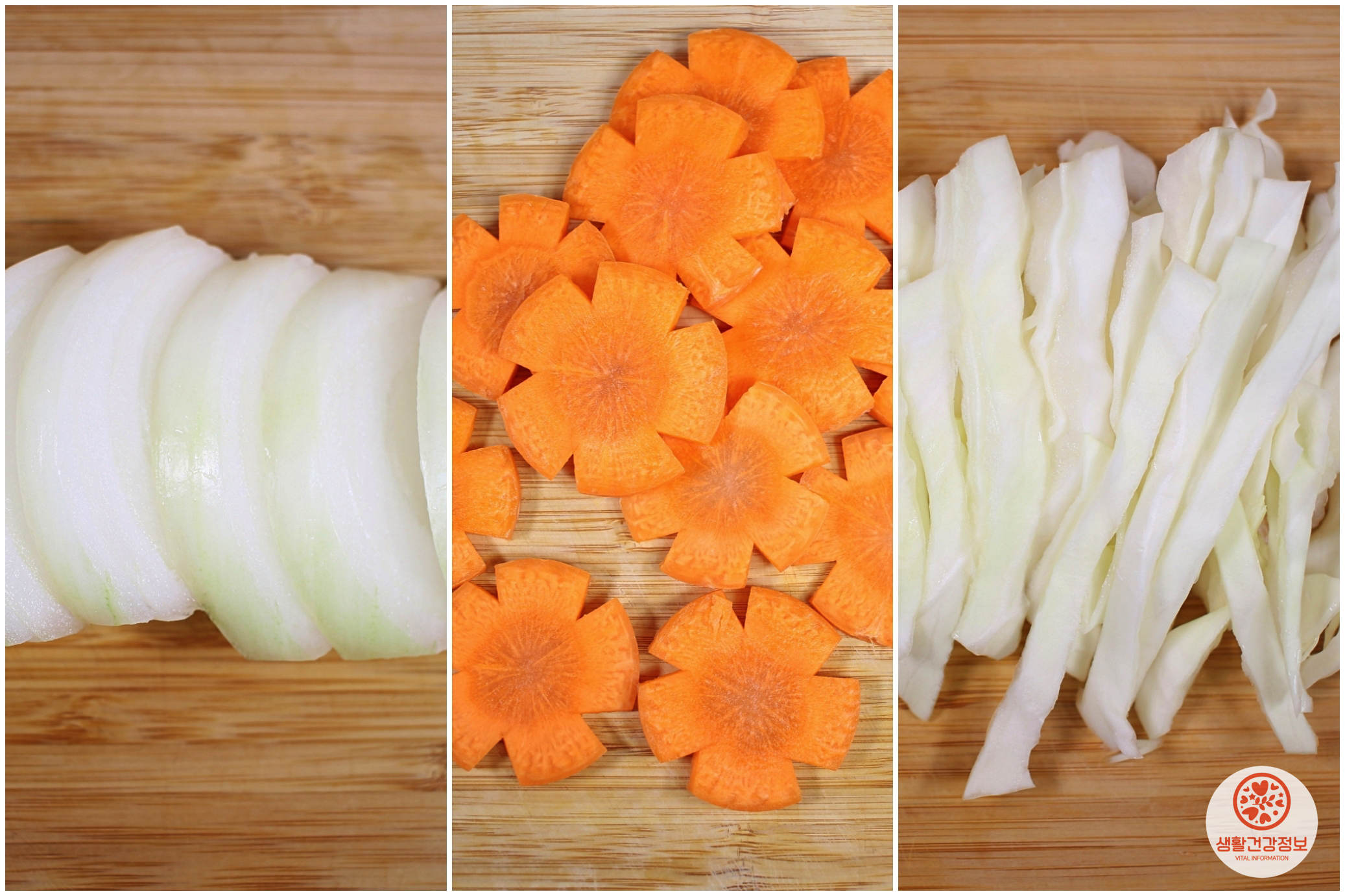 양파, 당근, 양배추도 적당한 크기로 썰어주세요.