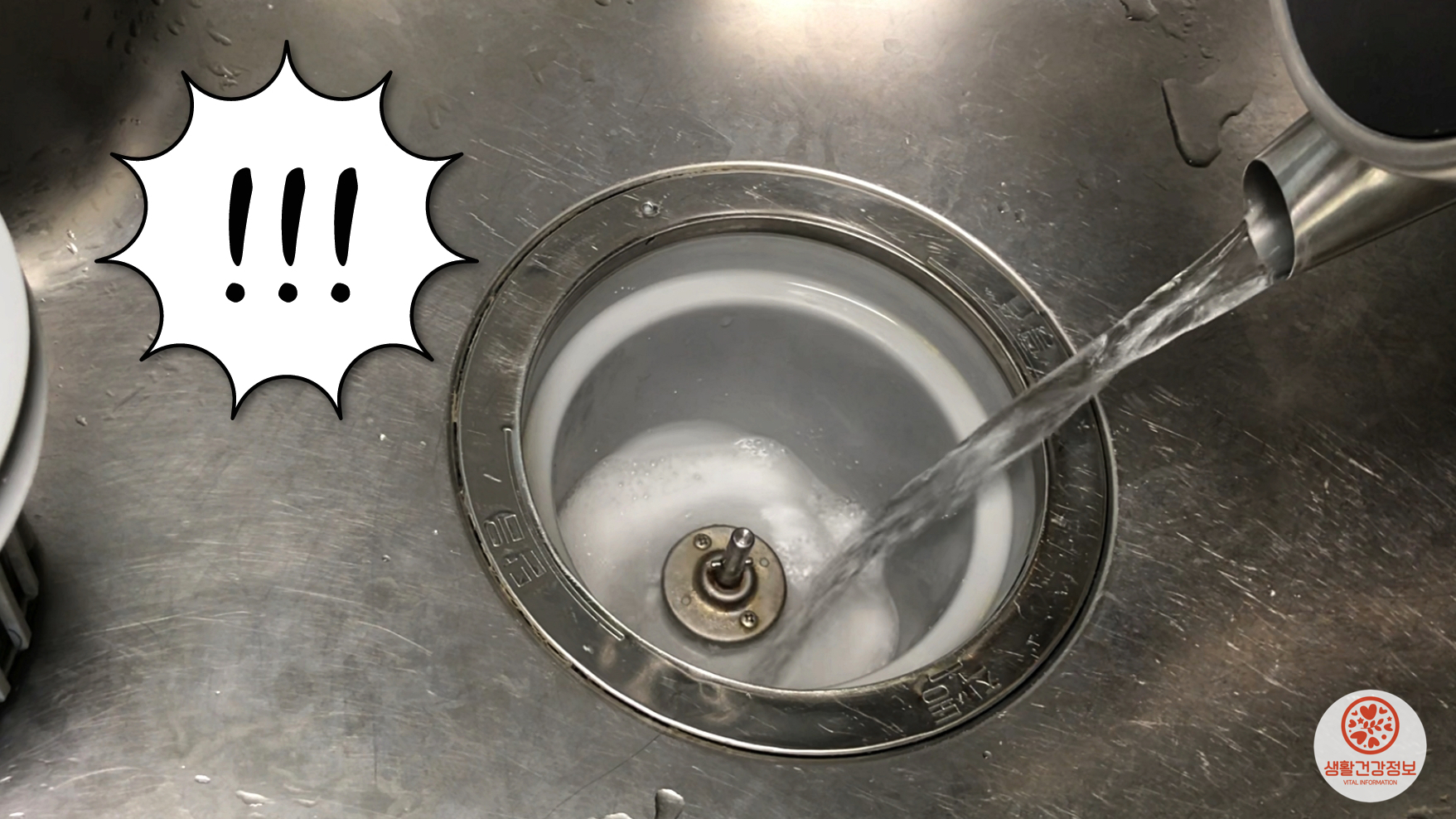 뜨거운물을 한김 식혀서 배수구에 붓고