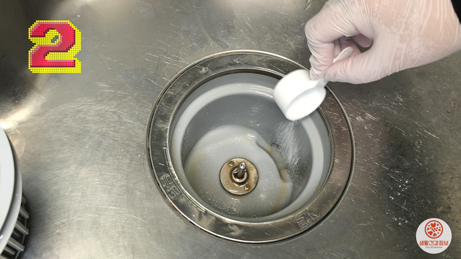탈취 얼음이 만들어지는 동안 배수구를 청소했어요.