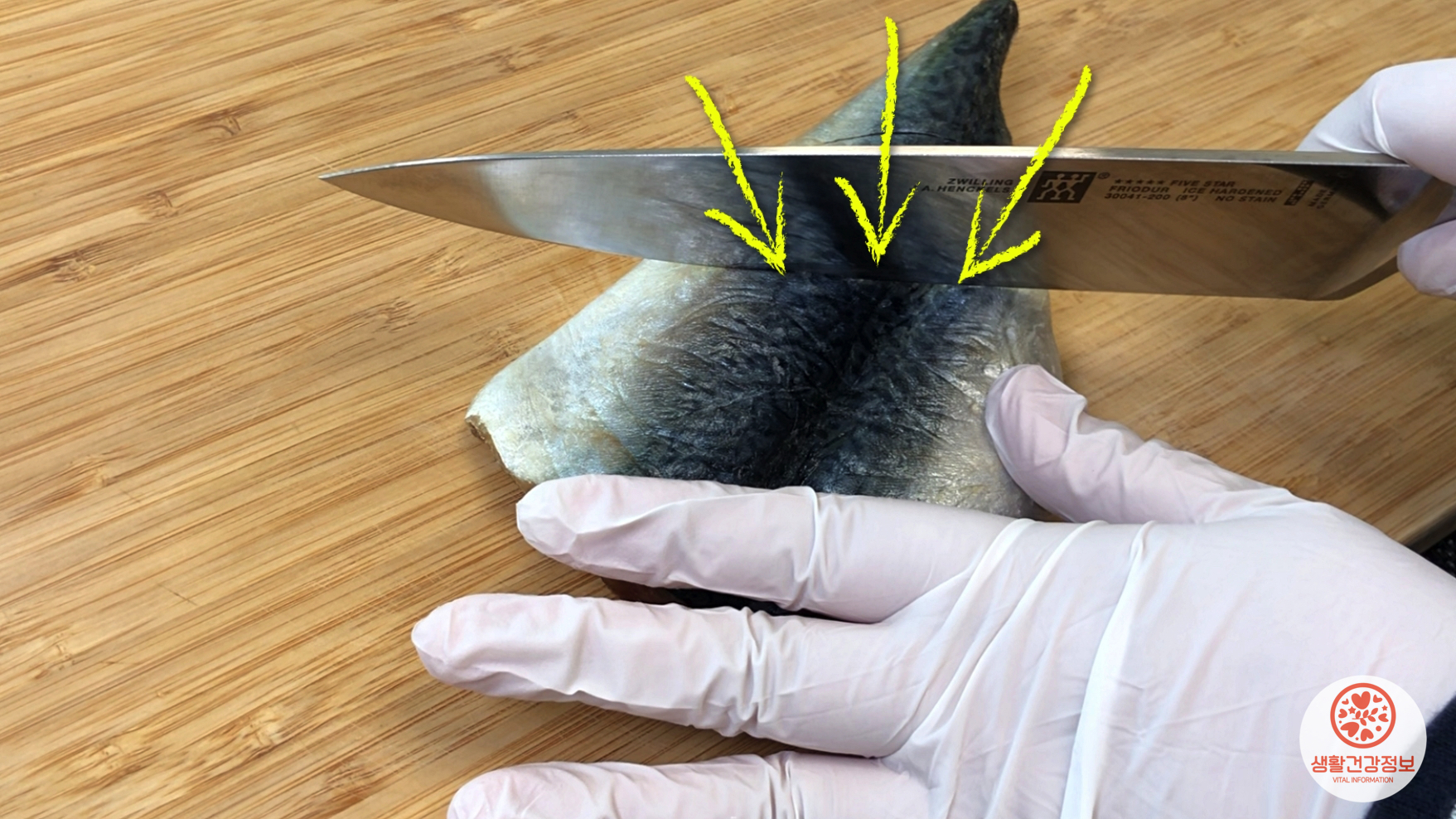 생선 안쪽부분이 프라이팬에 먼저 닿게