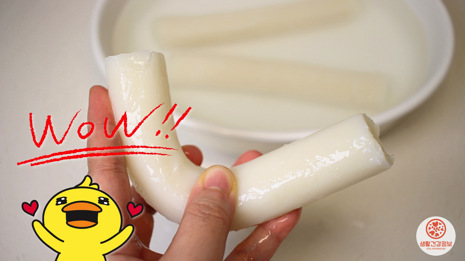 뜨거운물 속에 들어있던 가래떡을 꺼냈는데,