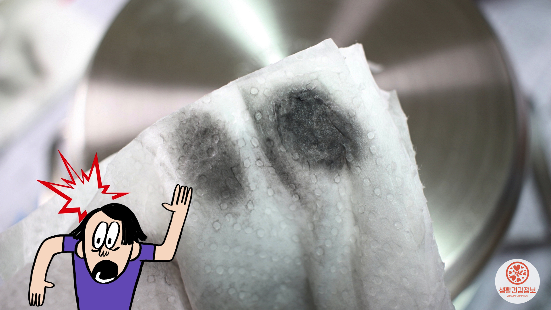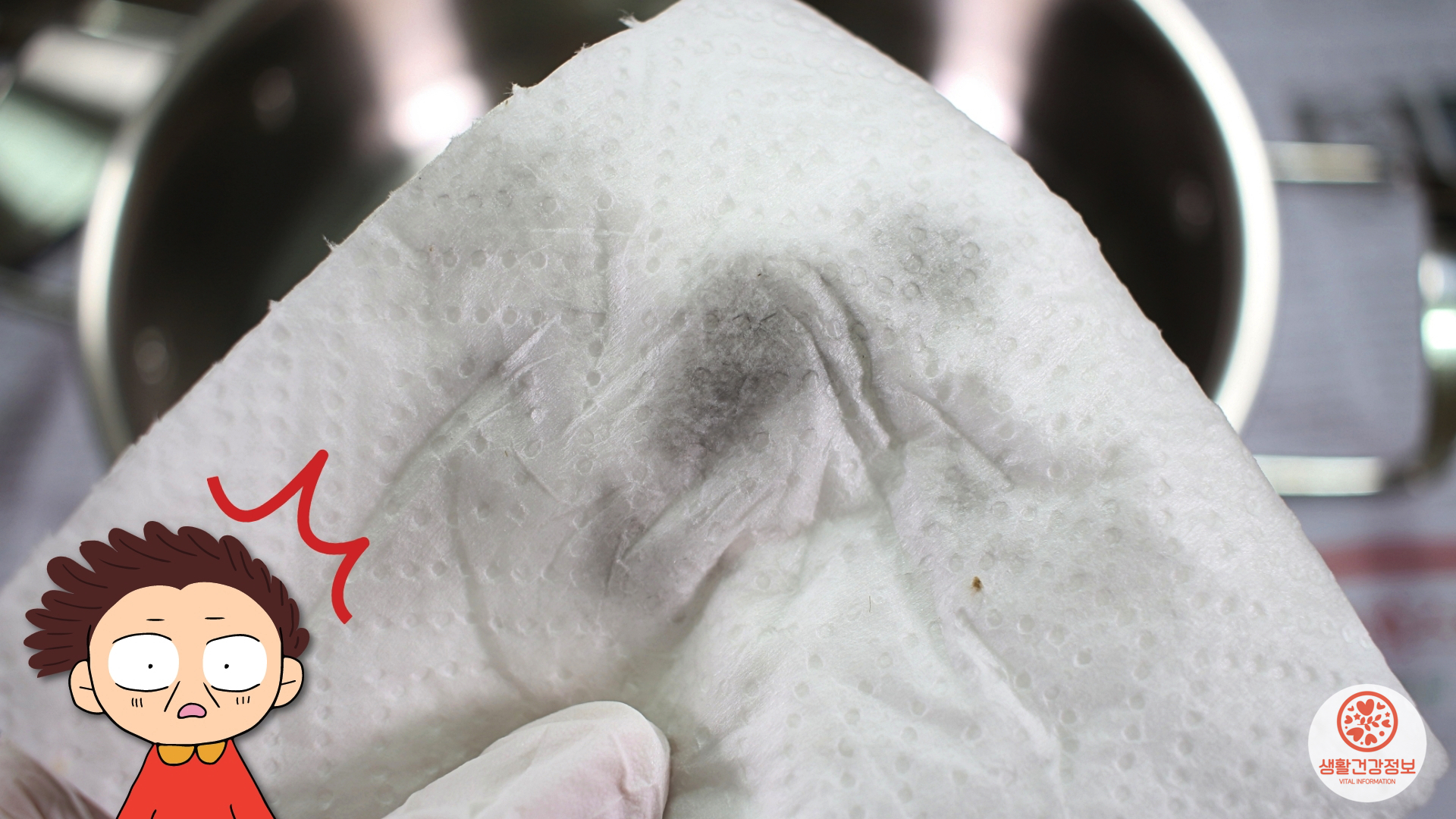 키친타월에 까맣게 묻어나는 연마제의 흔적...