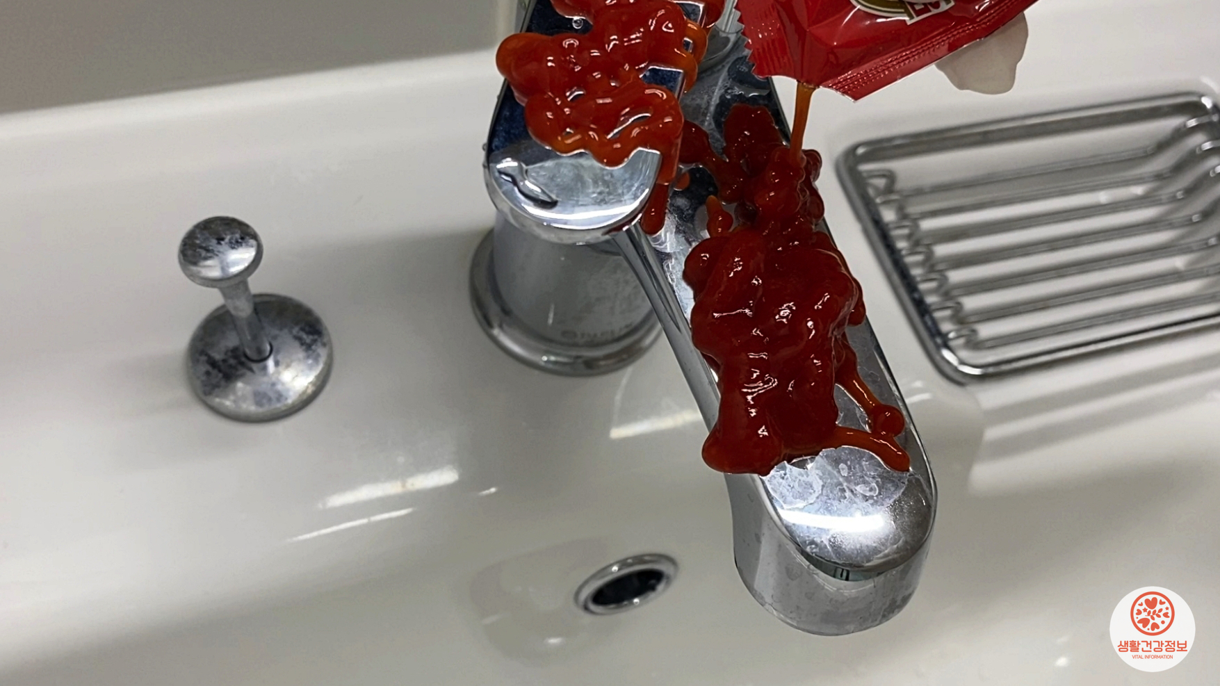 일회용케첩을 수도꼭지에 뿌리면 벌어지는 일!