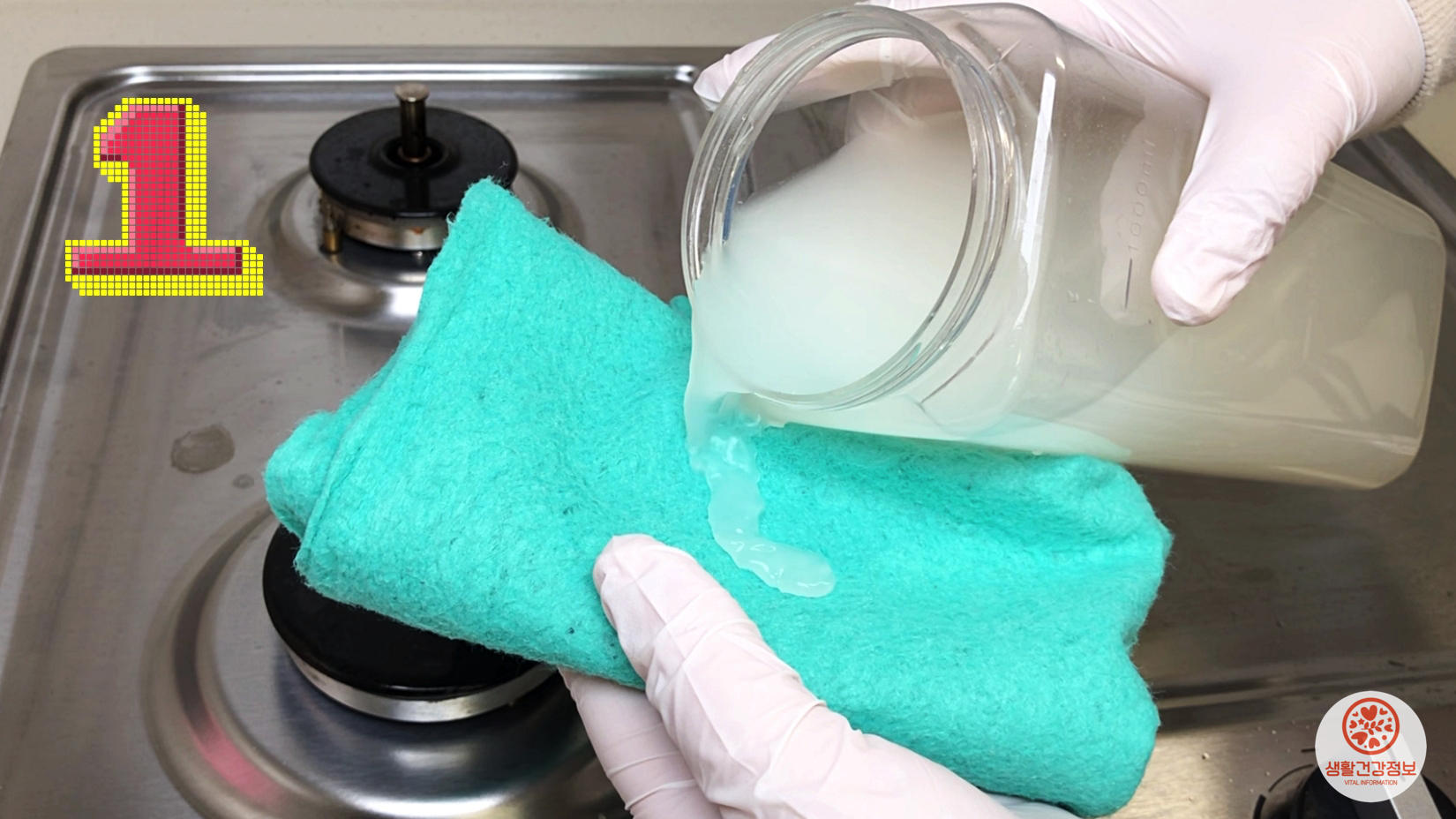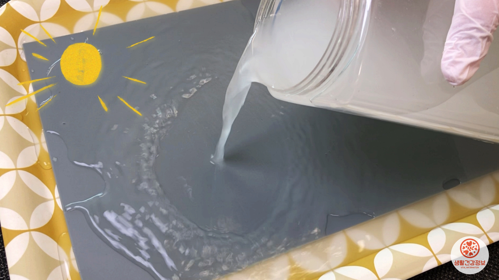 쌀뜨물을 골고루 뿌리고 닦아주면