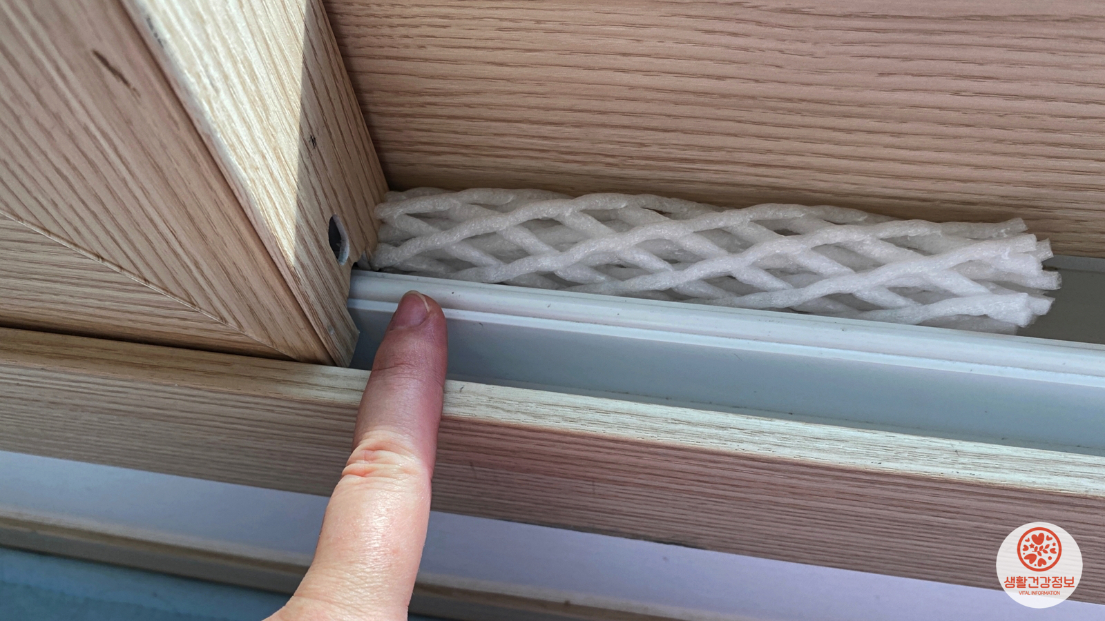마지막으로 과일포장망을 창문틈에 끼워볼게요~