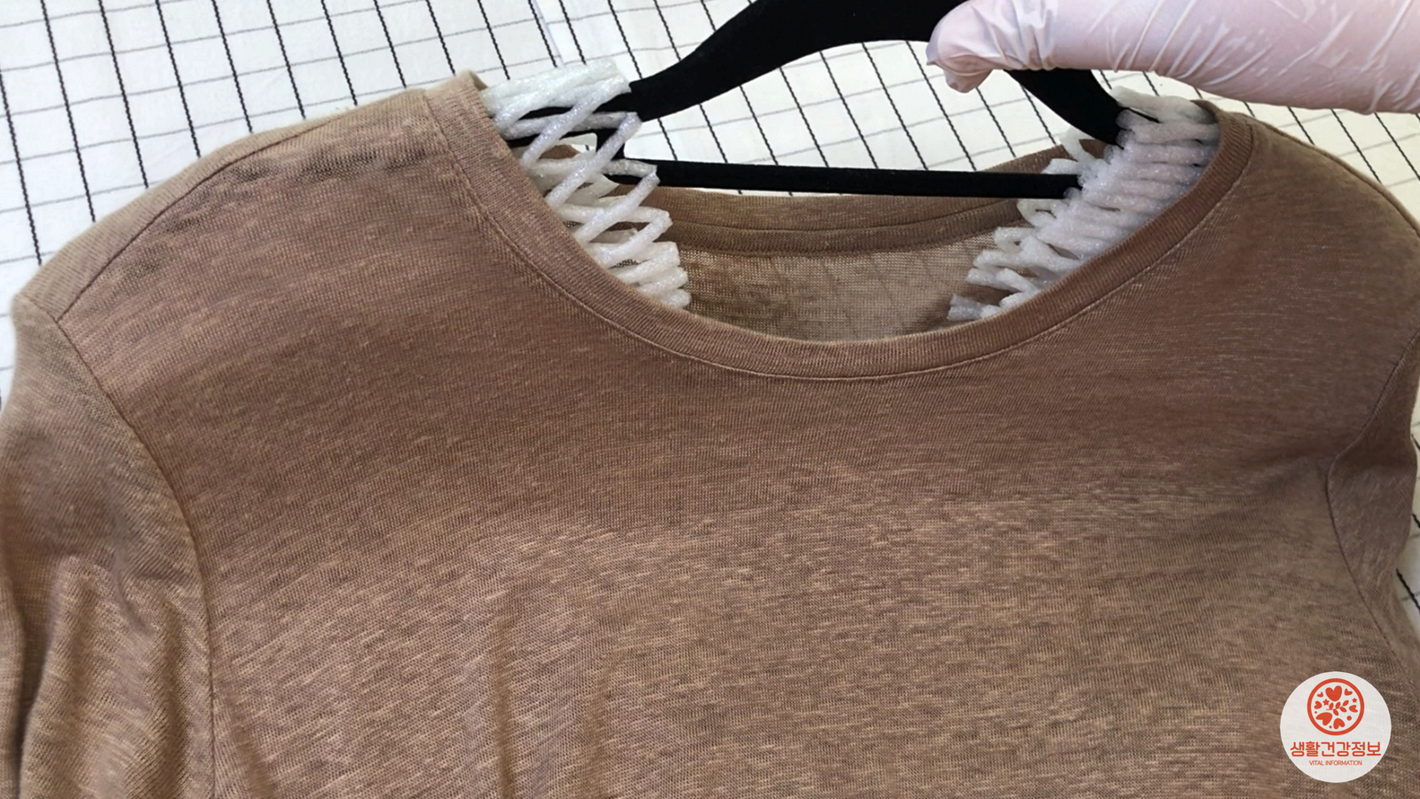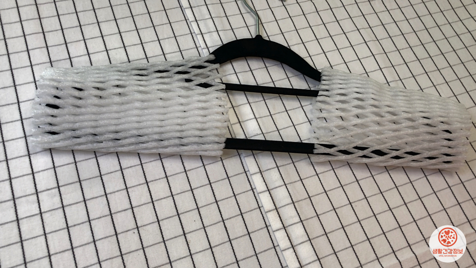 옷걸이 어깨 부분에 과일포장망을 씌우면