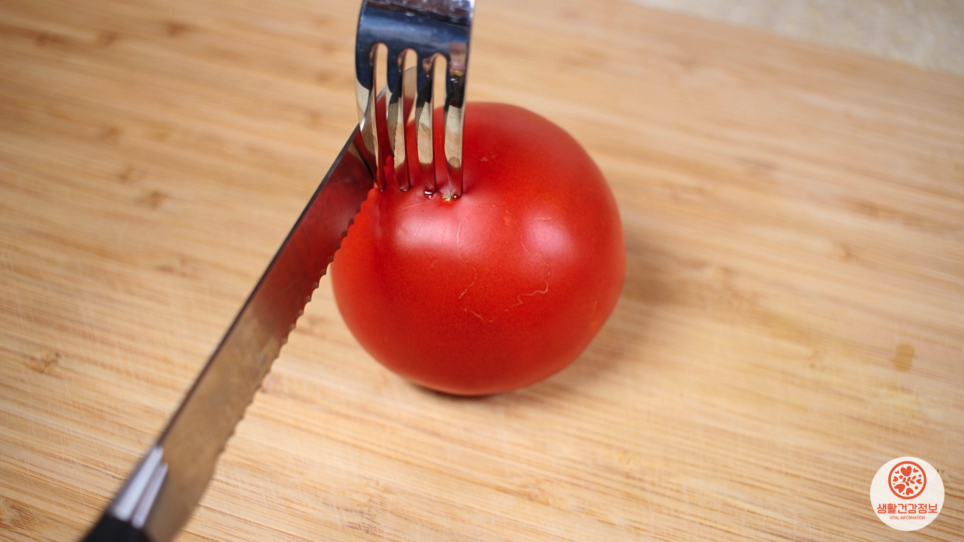 꼭지를 제거한 뒤 깨끗하게 씻은 토마토를