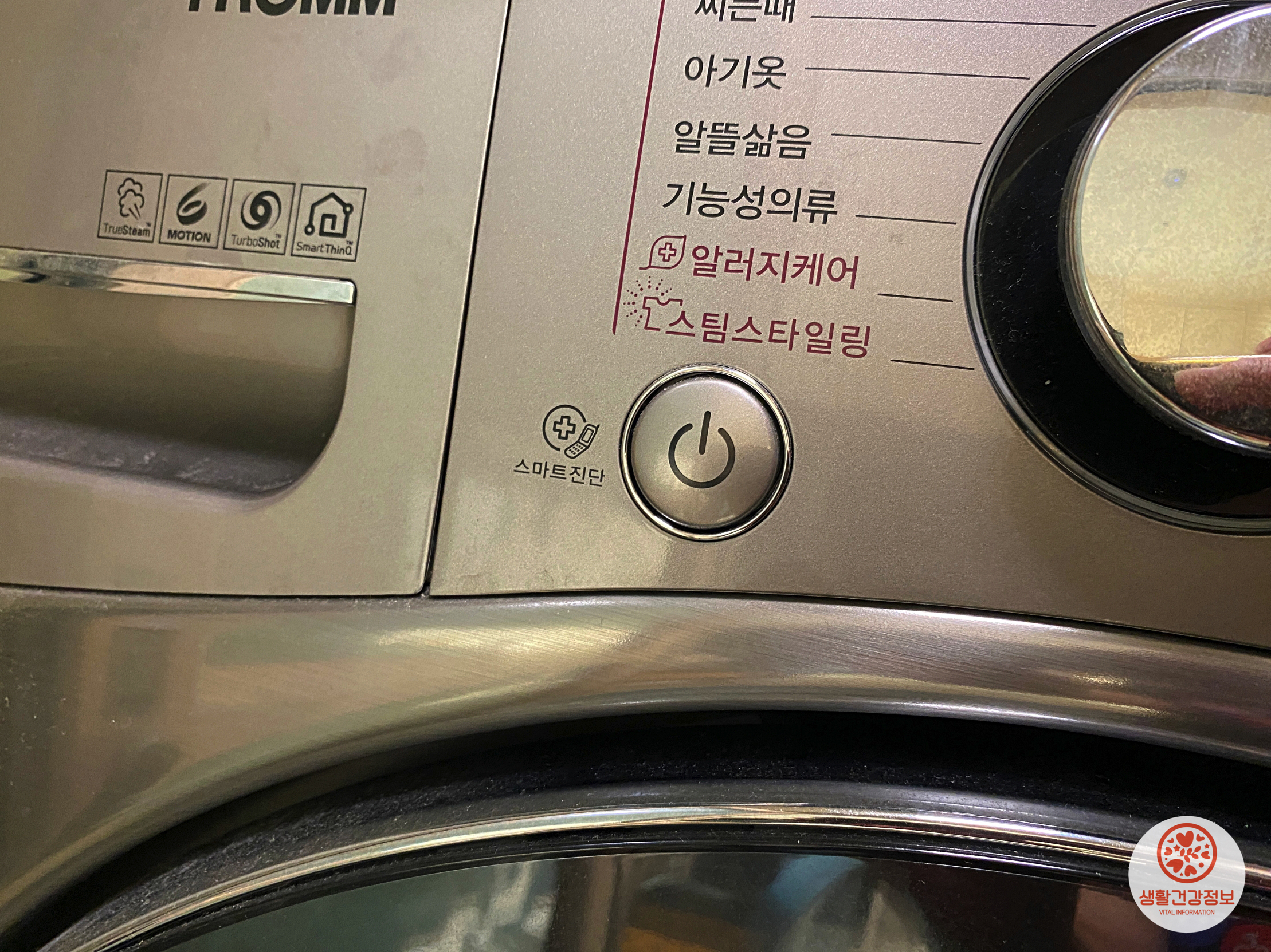 세탁기의 전원버튼은 동그라미가 뚫려있고