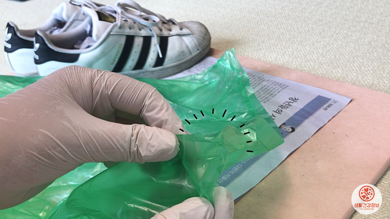 비닐봉지에 운동화를 넣고