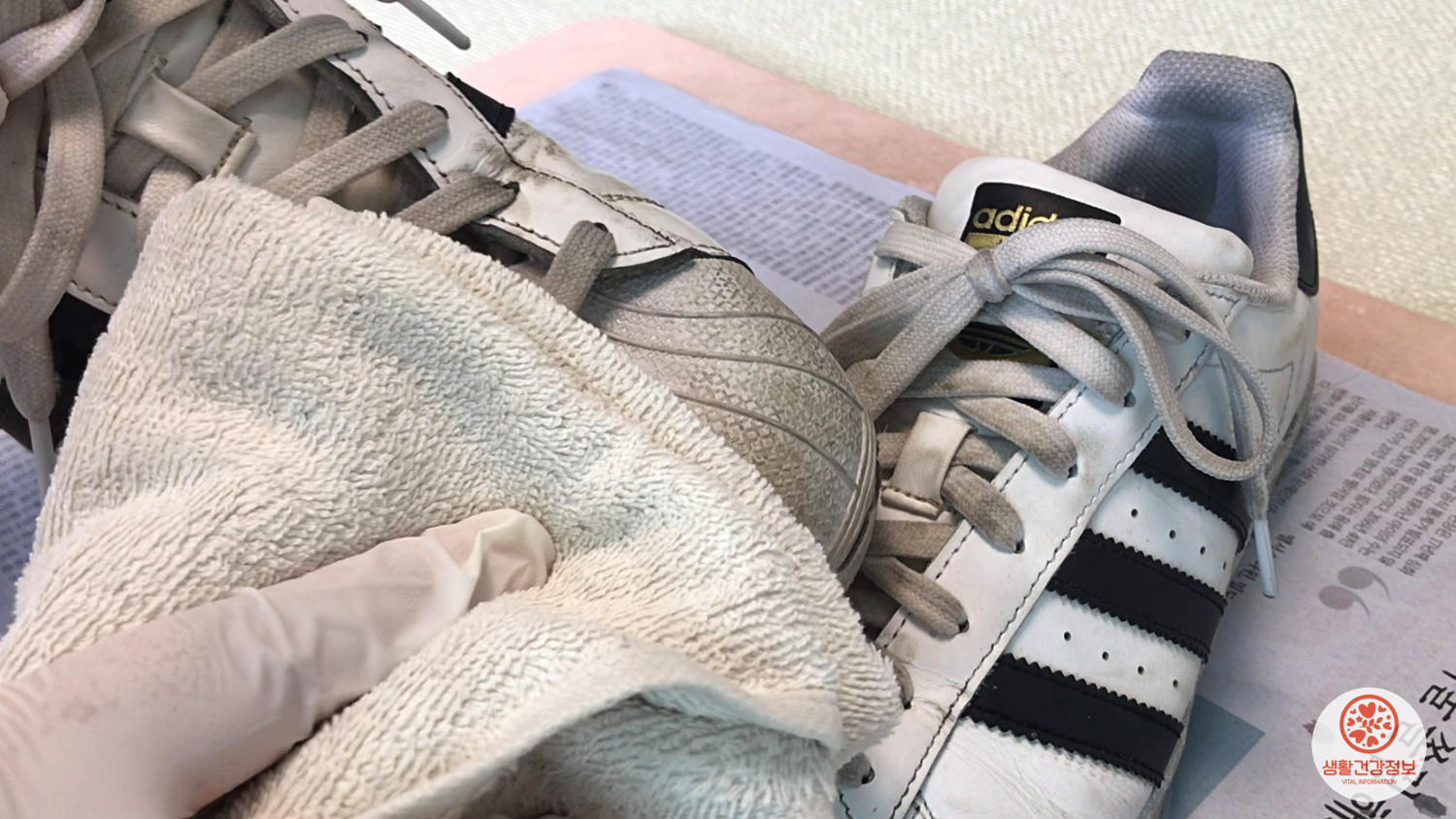 운동화겉의 물기를 닦아주세요.