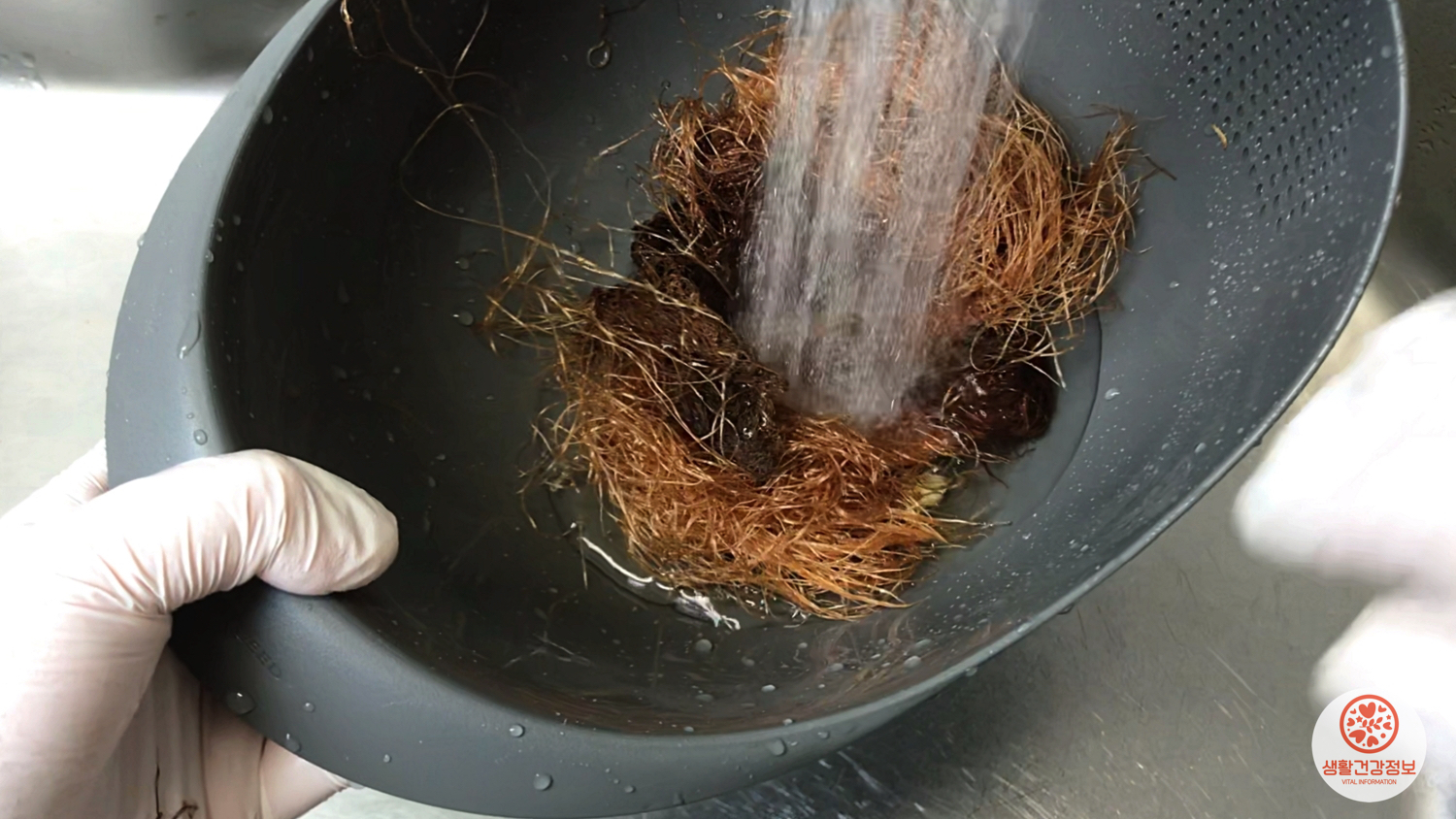 먼저 흐르는 물로 씻어주세요.