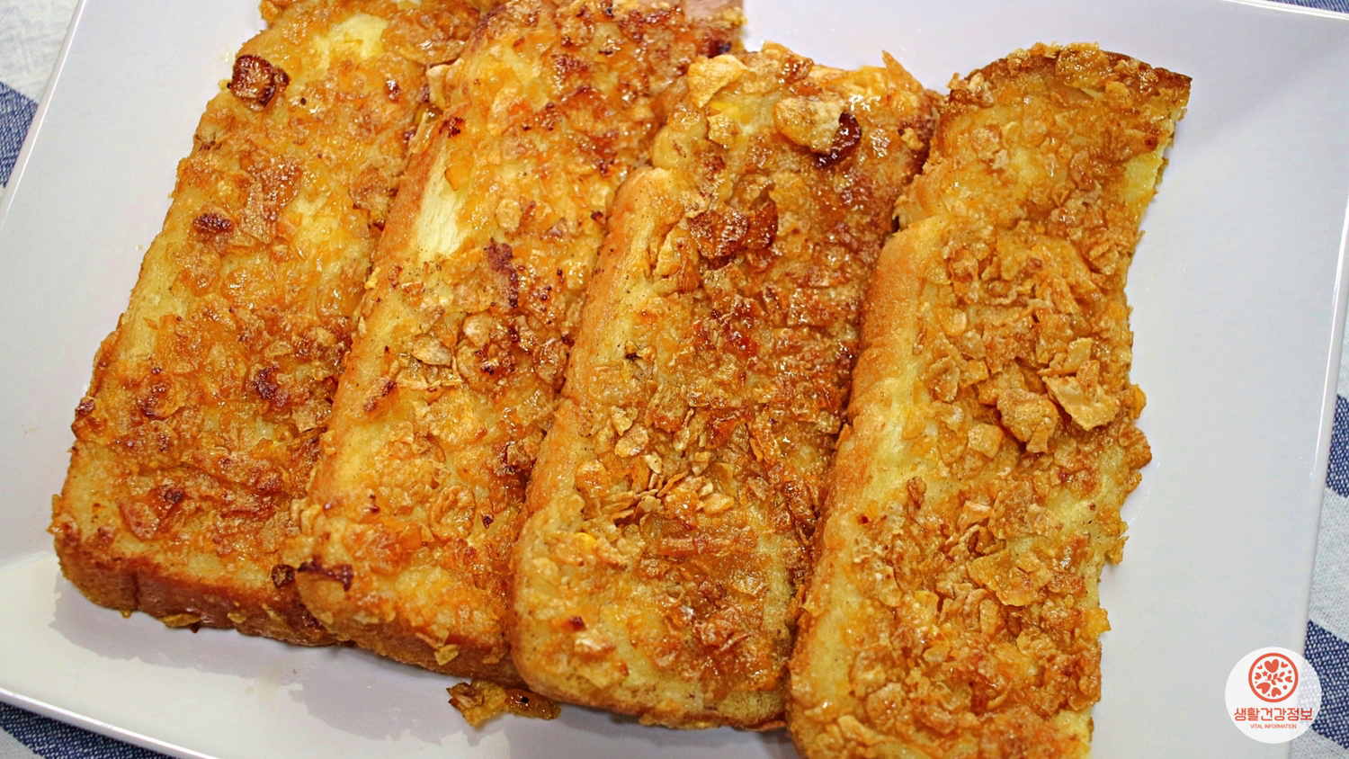 재료 - 식빵, 콘프레이크, 계란, 우유, 설탕, 시나몬가루