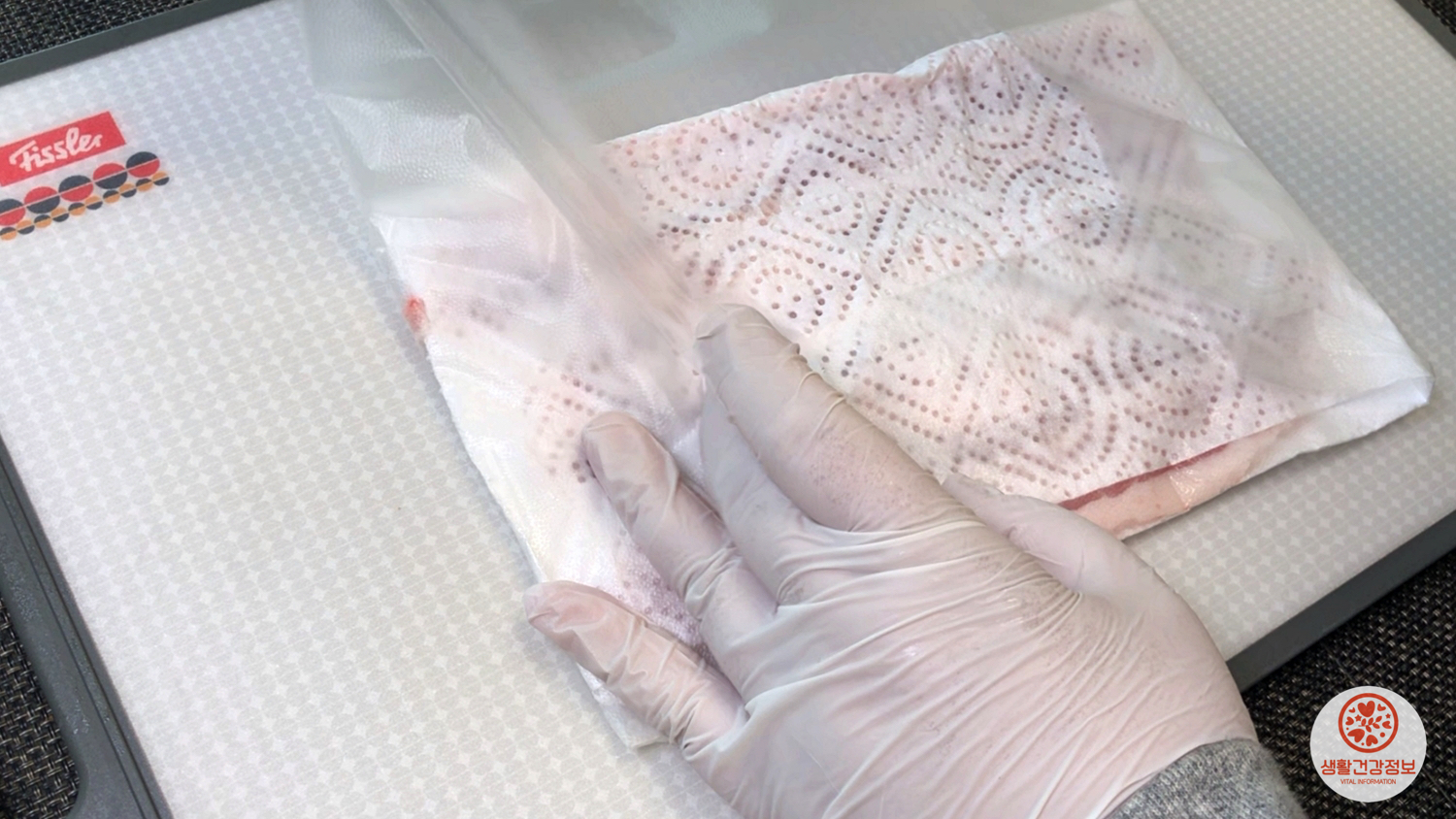 키친타월로 한번 감싸주시고요.