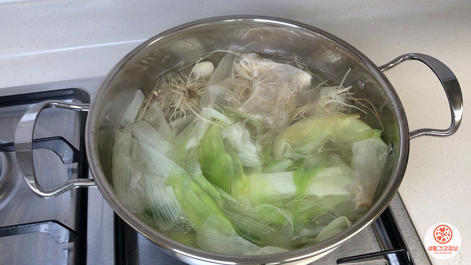 물에 끓여서 대파육수로 만들면