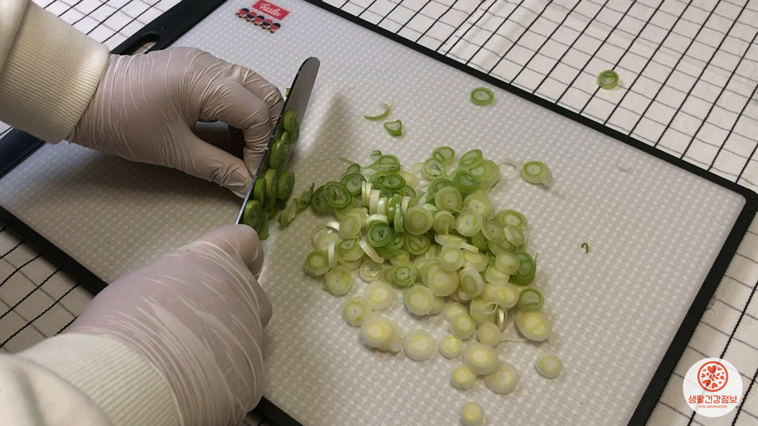 흰색 줄기는 두가지로 나눠서 썰었어요.