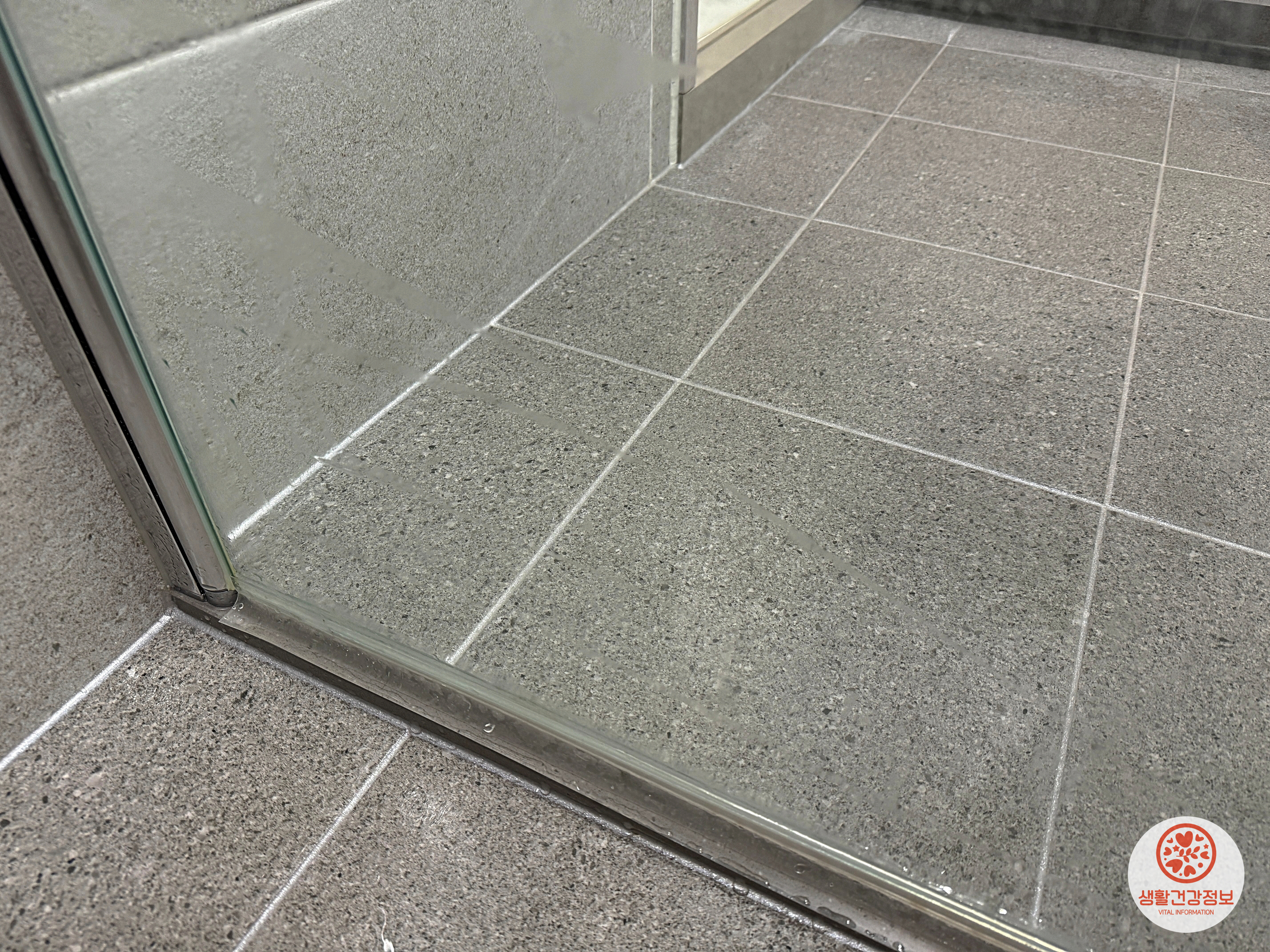 줄눈도 잘 보이지 않을 정도로 뿌옇던 샤워부스가