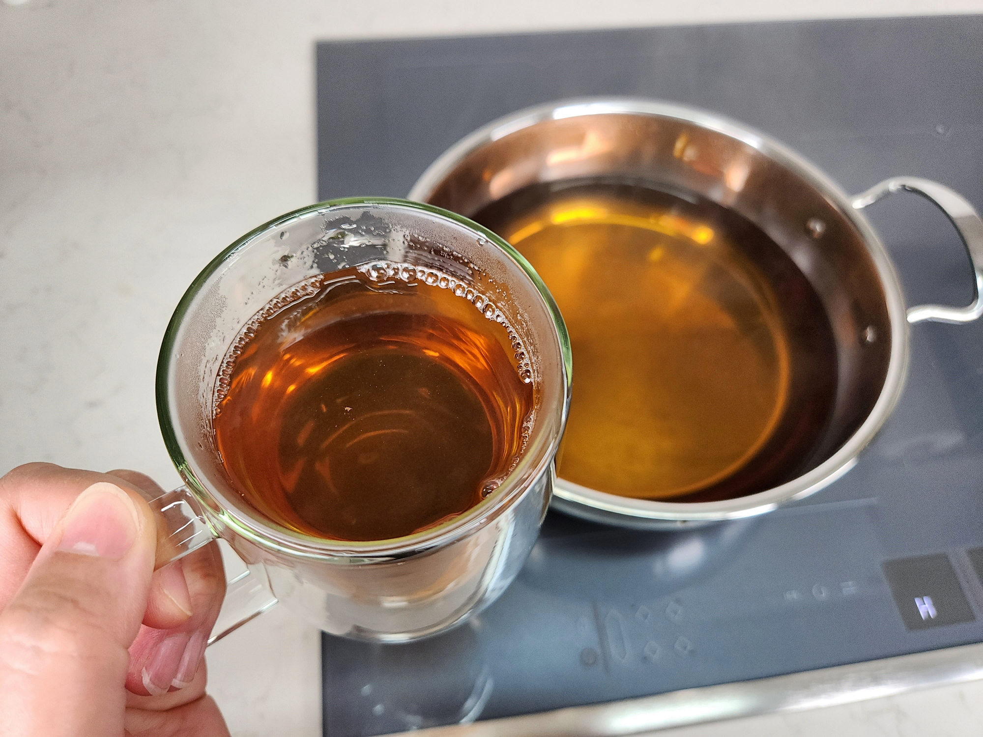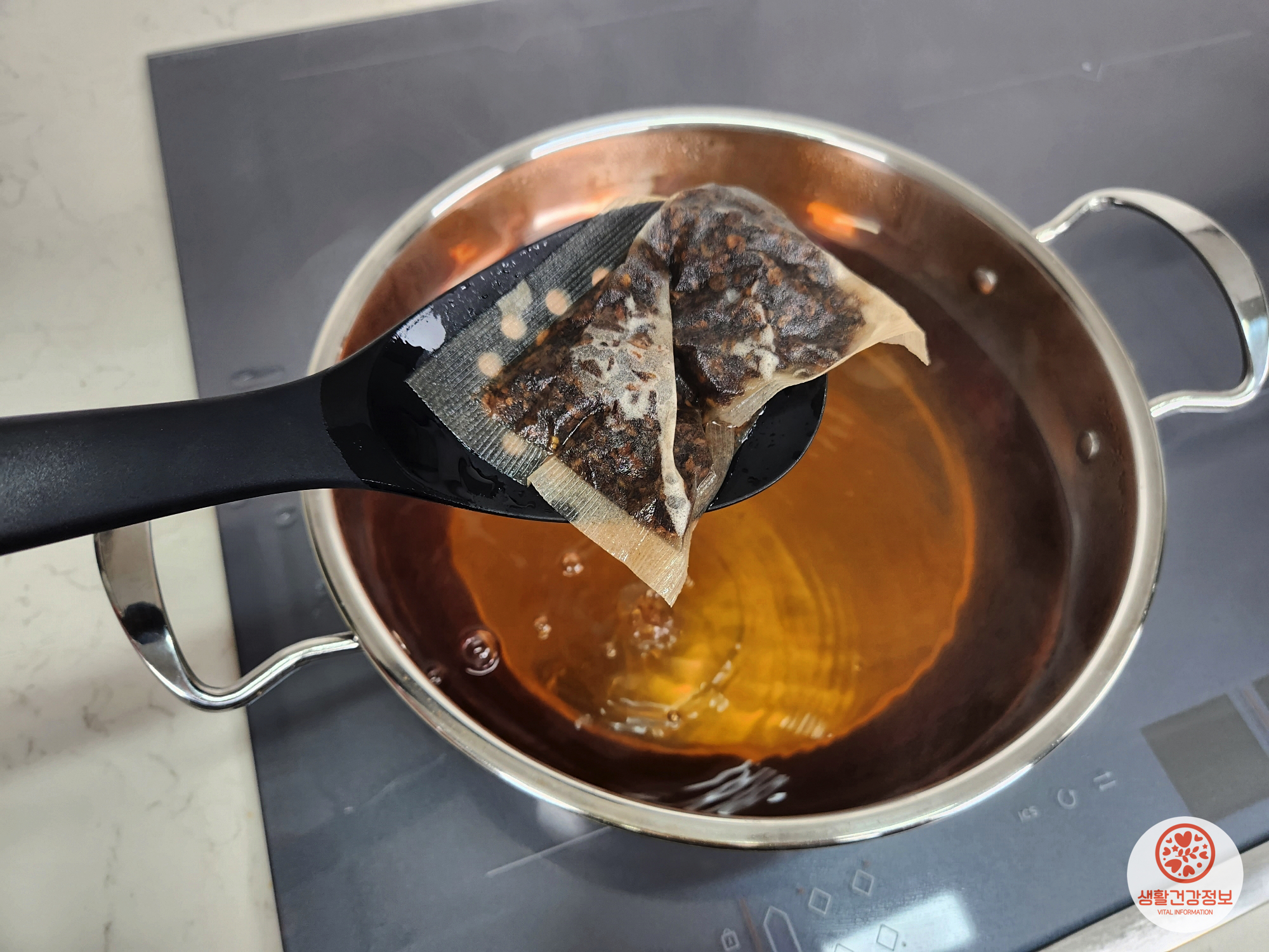10분간 우려냈더니 색이 더 진해졌죠?!