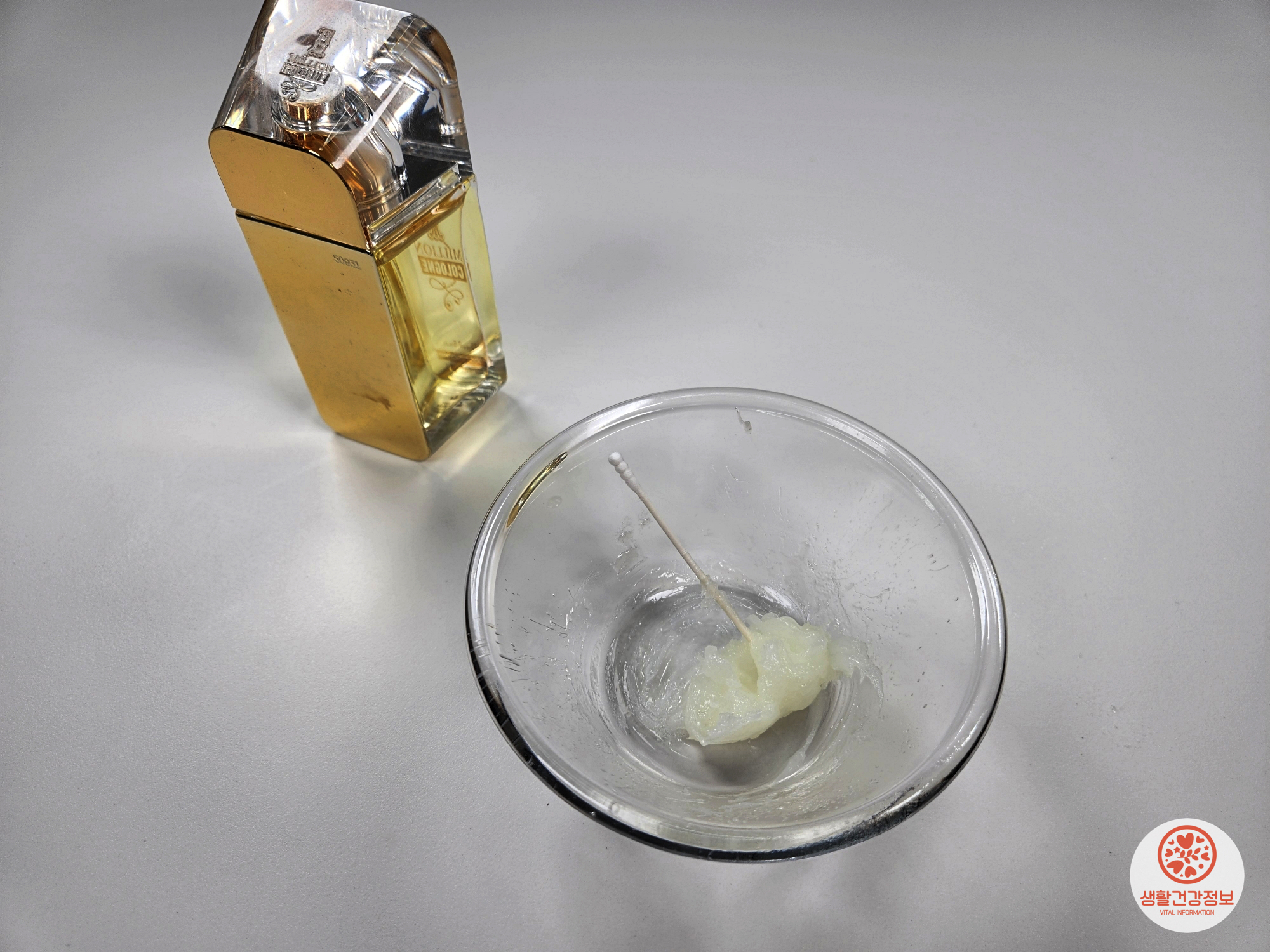향수를 뿌려서 섞어주세요.
