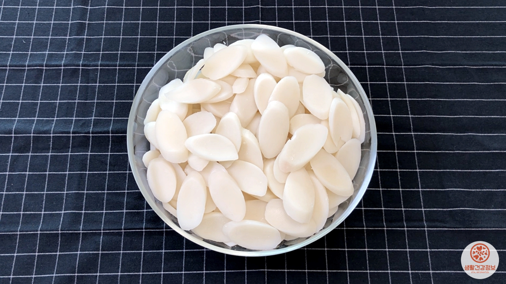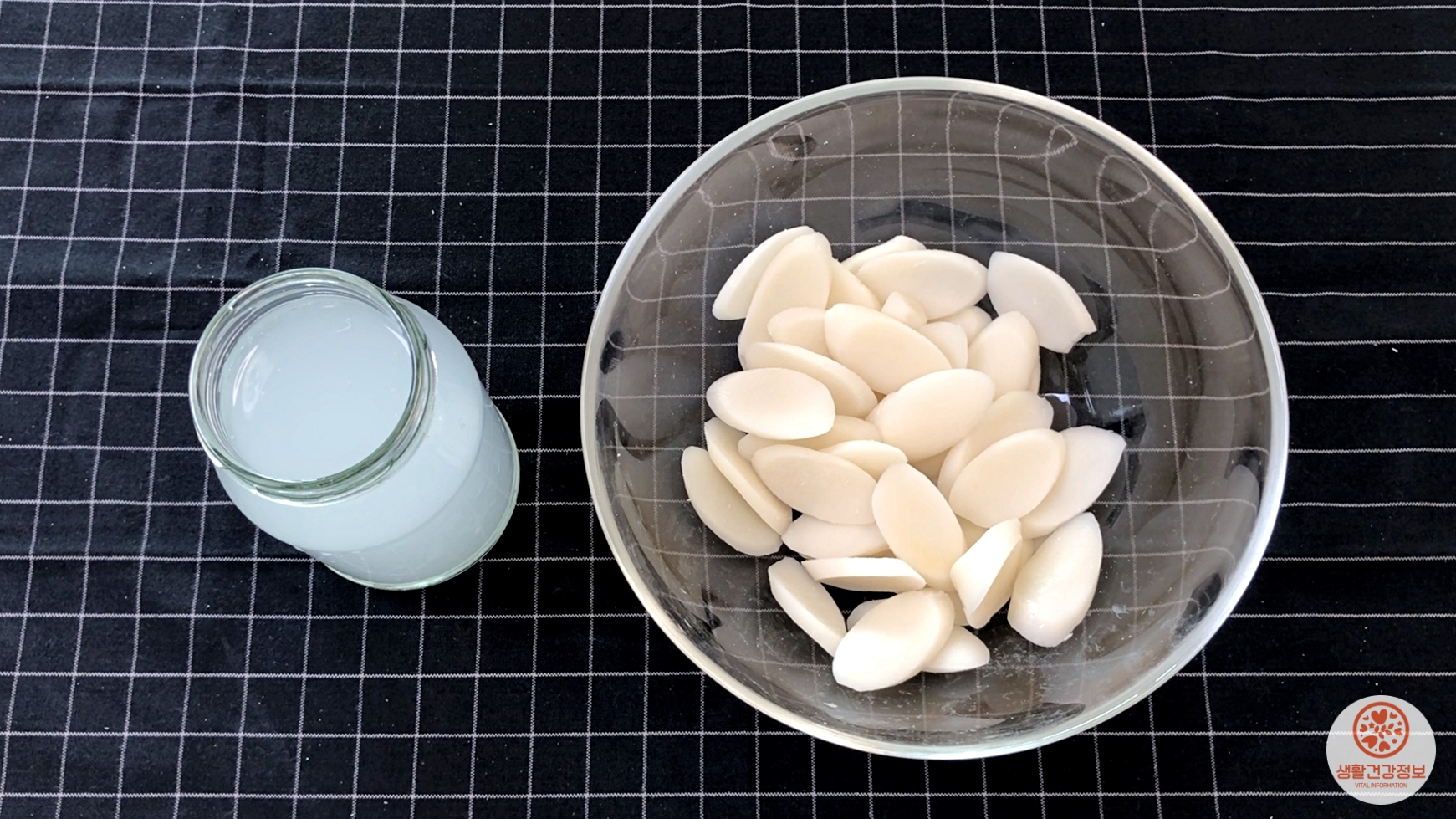 방법은 쌀뜨물에 떡국떡을 담그기만 하면 돼요.