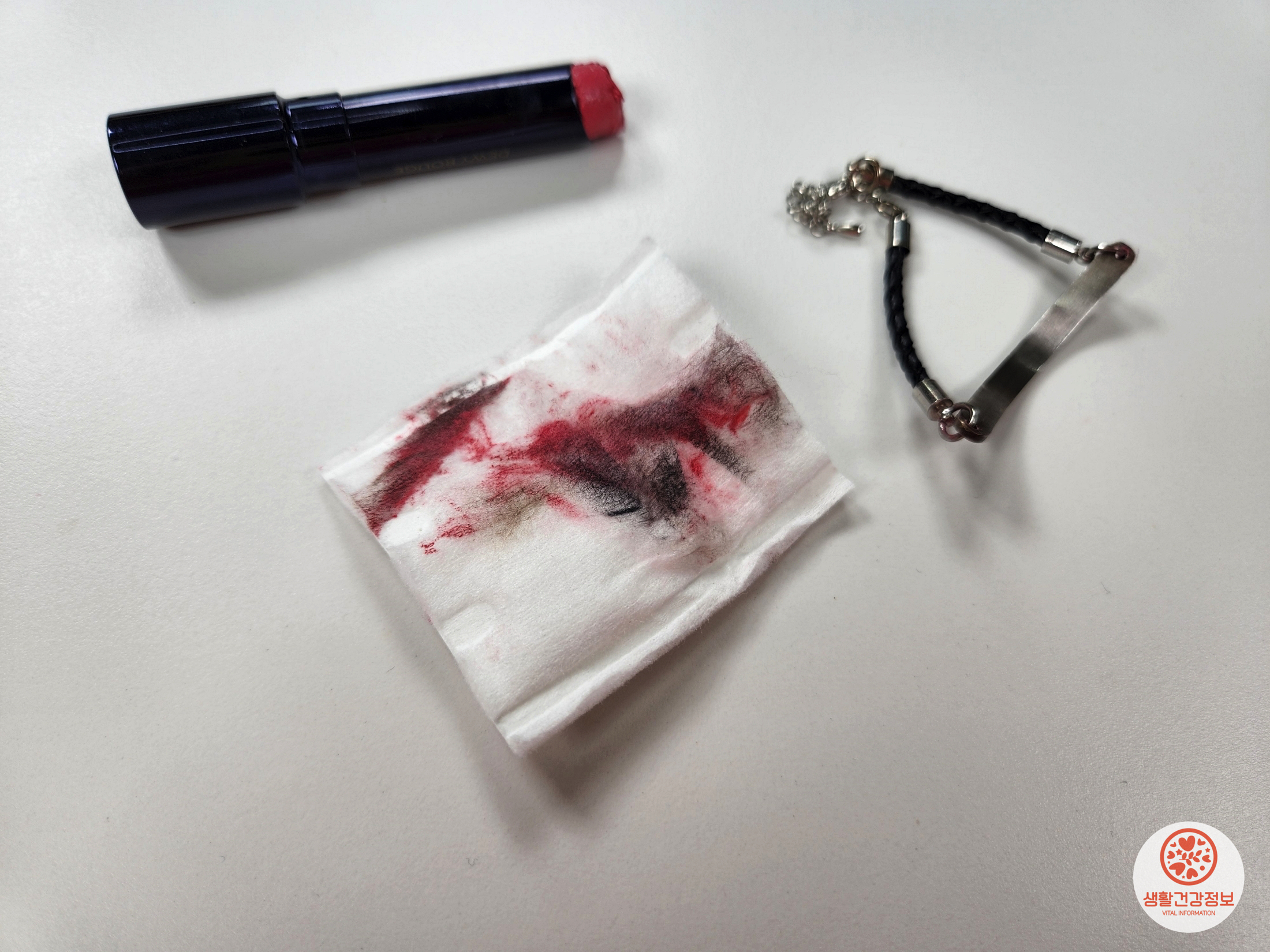 화장솜에 립스틱을 묻혀서
