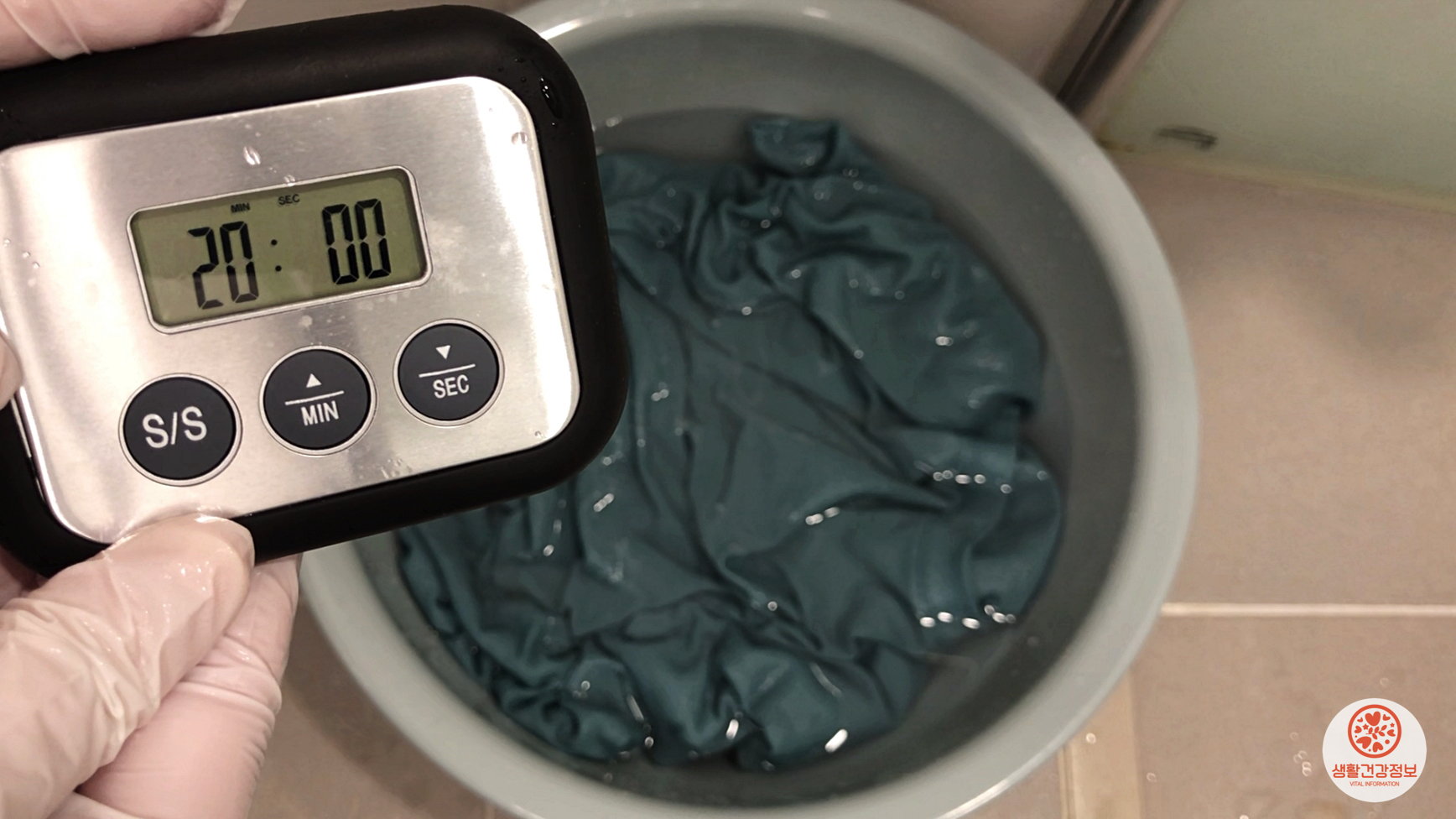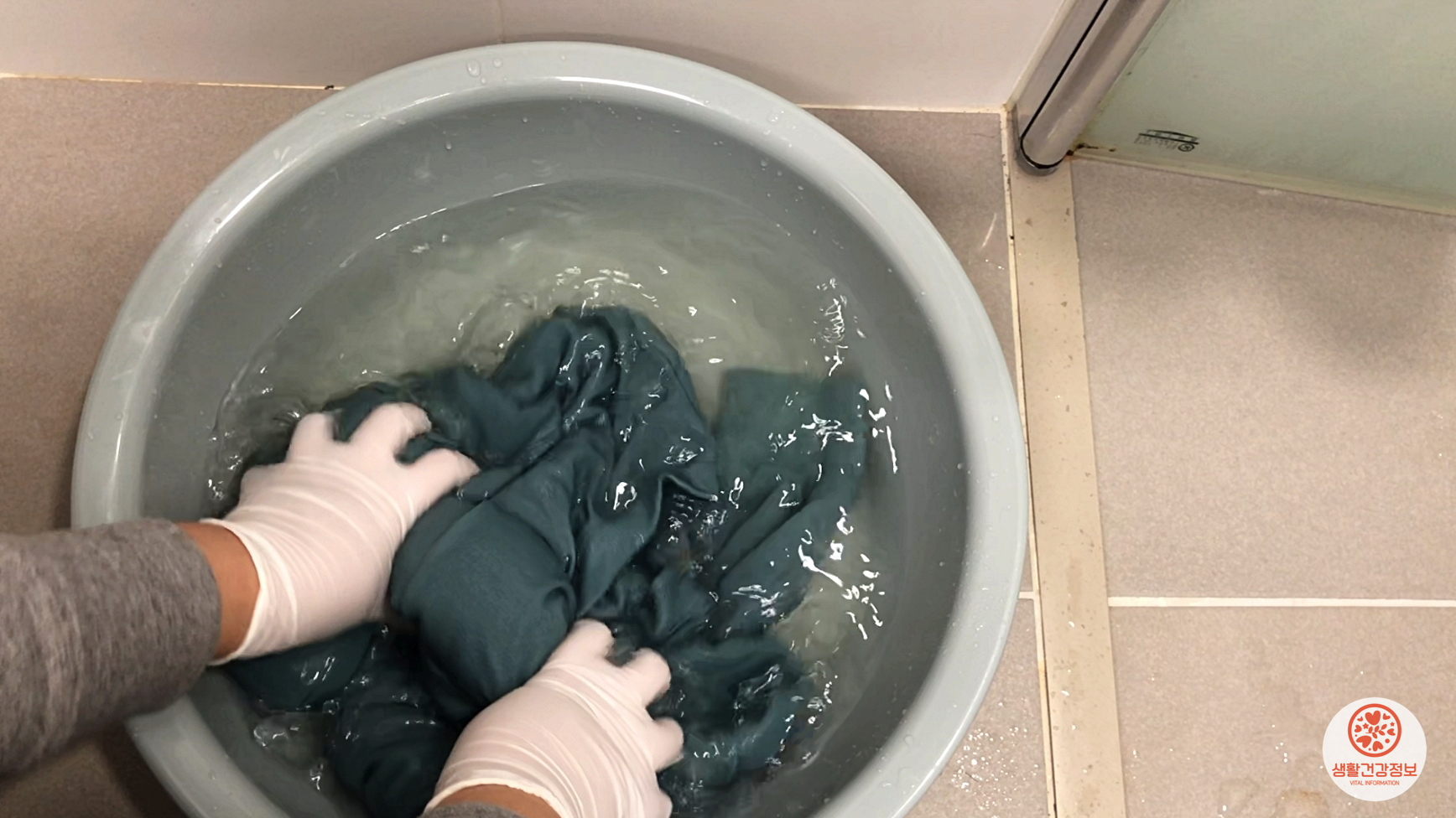 20분 뒤에 손으로 가볍게 빨래를 해요.