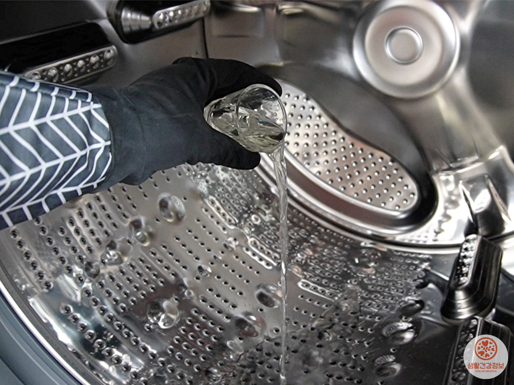 락스를 부은 다음 세탁기의 자체 세척기능인