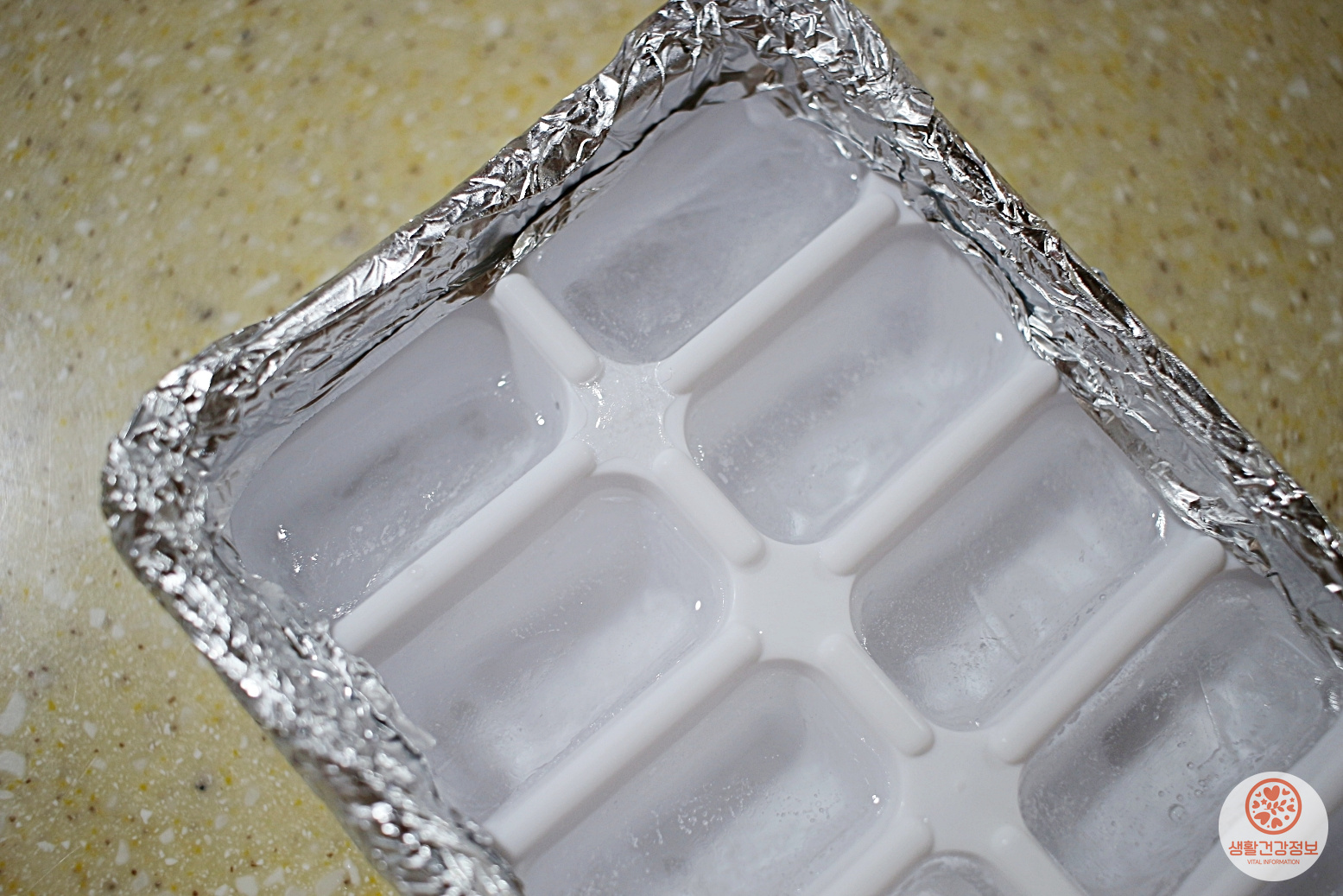 호일로 감싼 얼음틀은