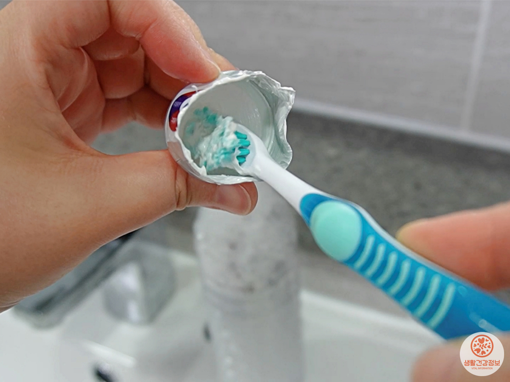 뚜껑에 남은 치약도