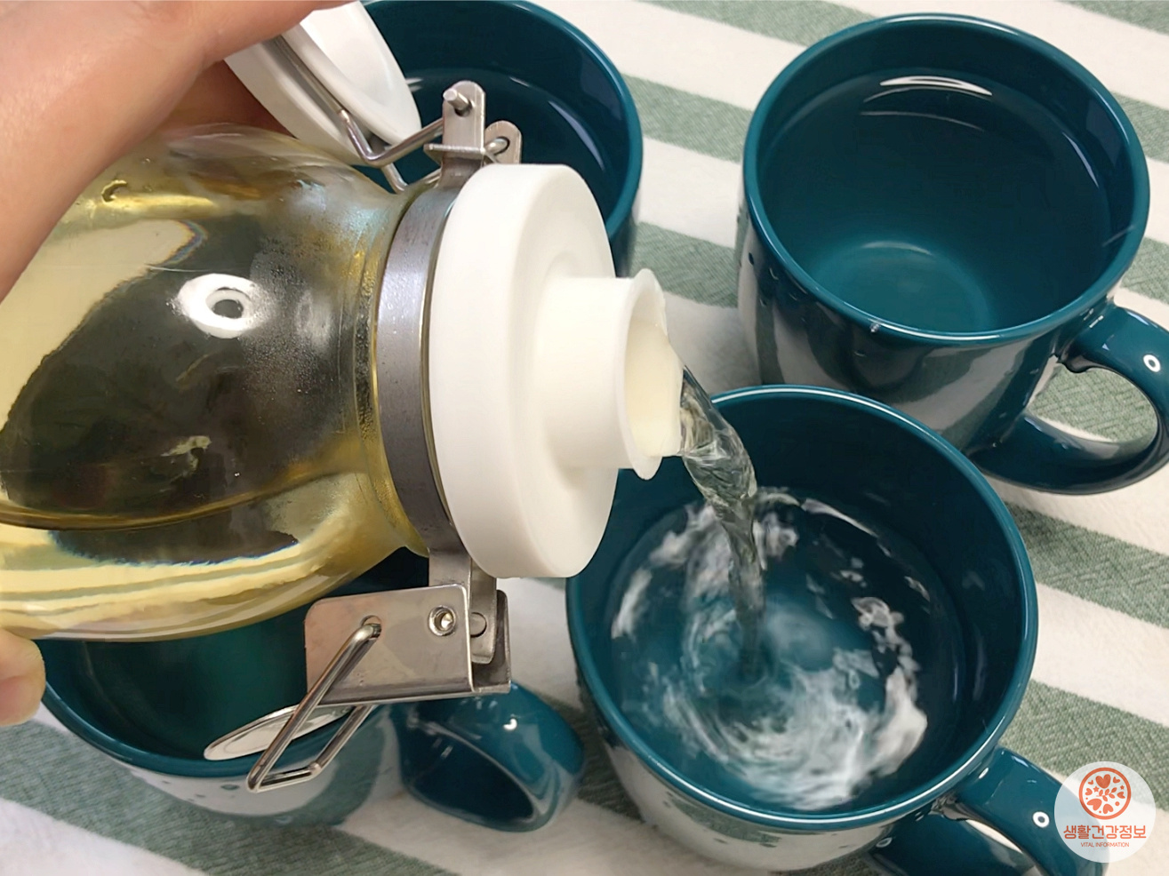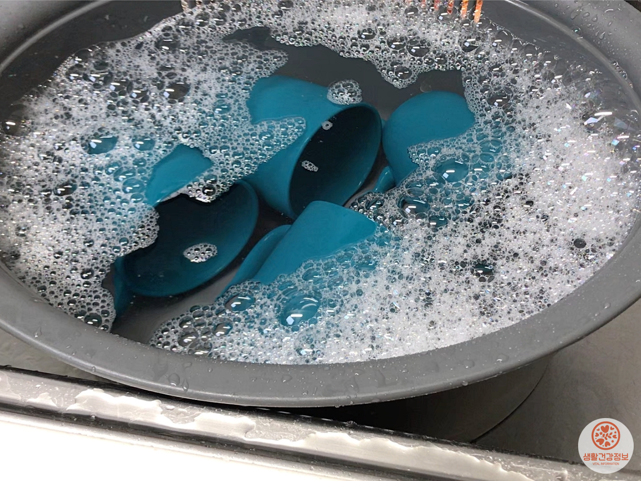 주방세제를 푼 물에 10분동안 컵을 담갔다가