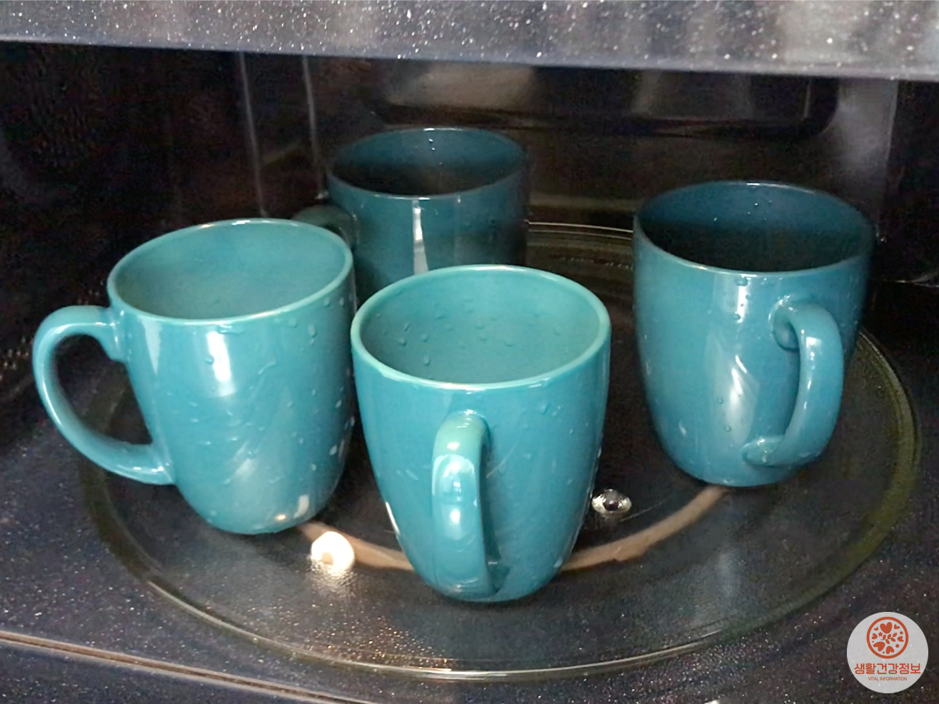 다시 물을 반쯤 채우고 전자레인지로 1분만 돌리면
