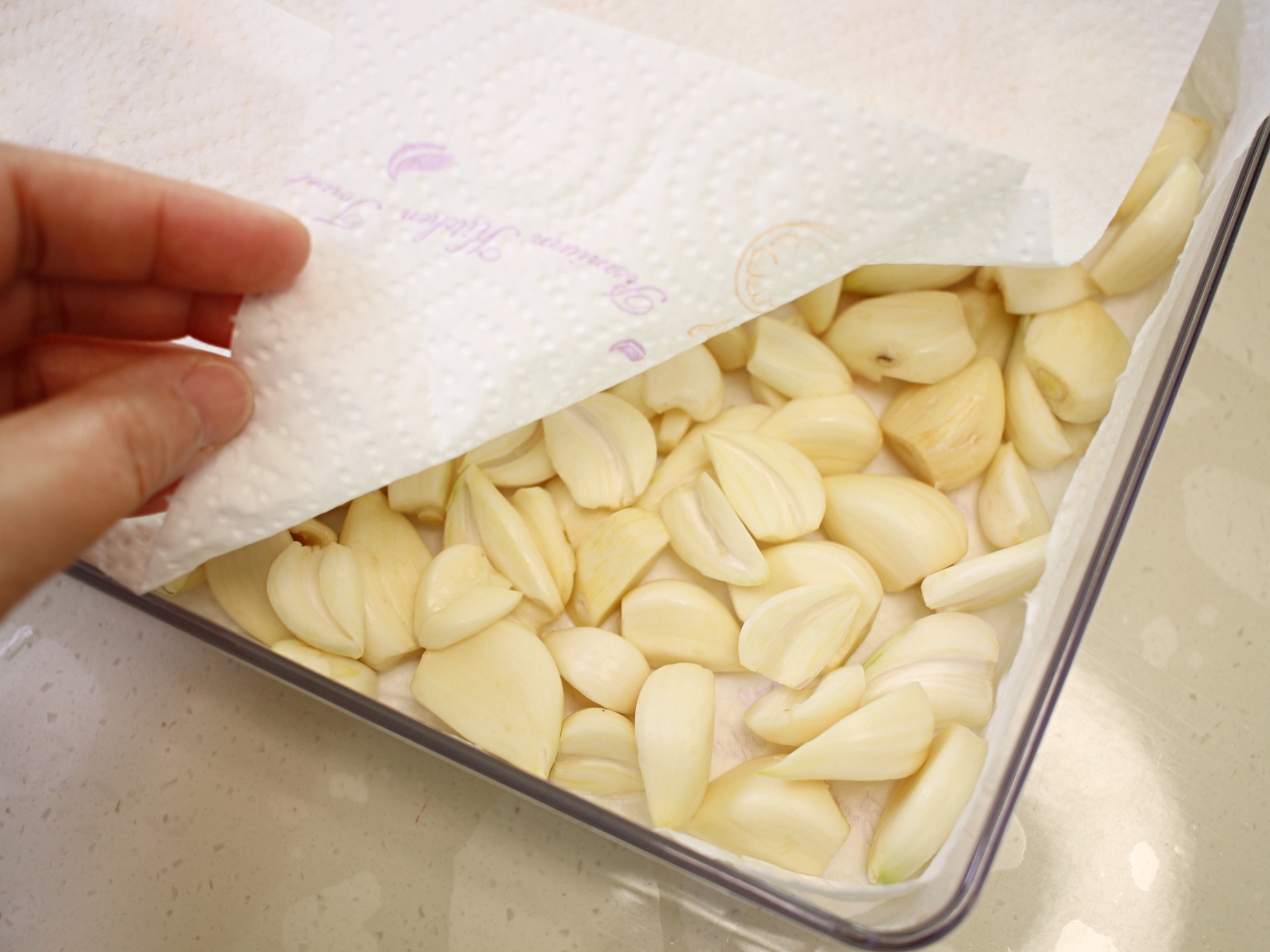 그 위에 마늘을 올리고 다시 키친타월을 덮어주면 끝!