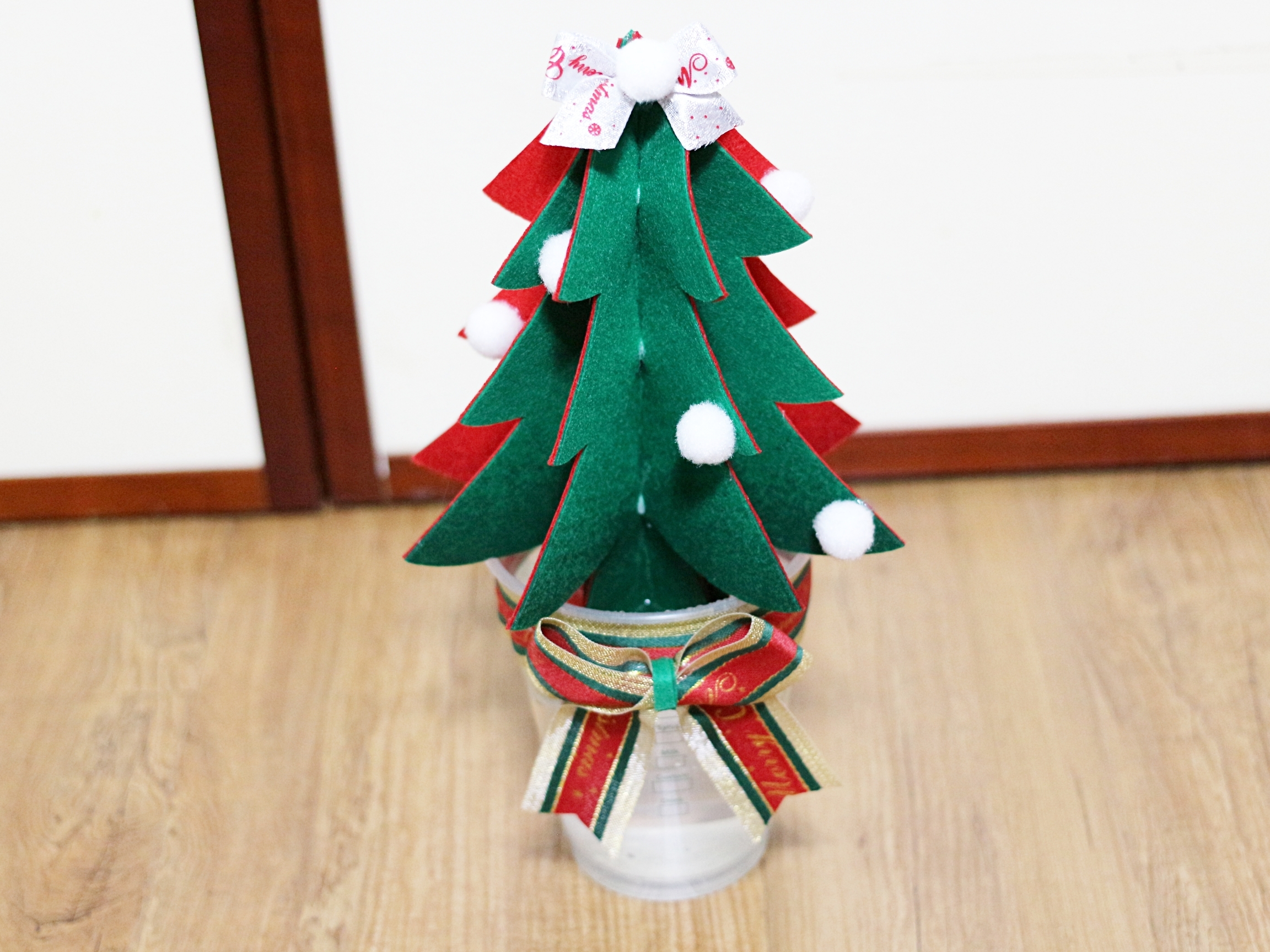 준비물은 펠트지, 일회용컵, 리본끈, 단추, 뿅뿅이 등