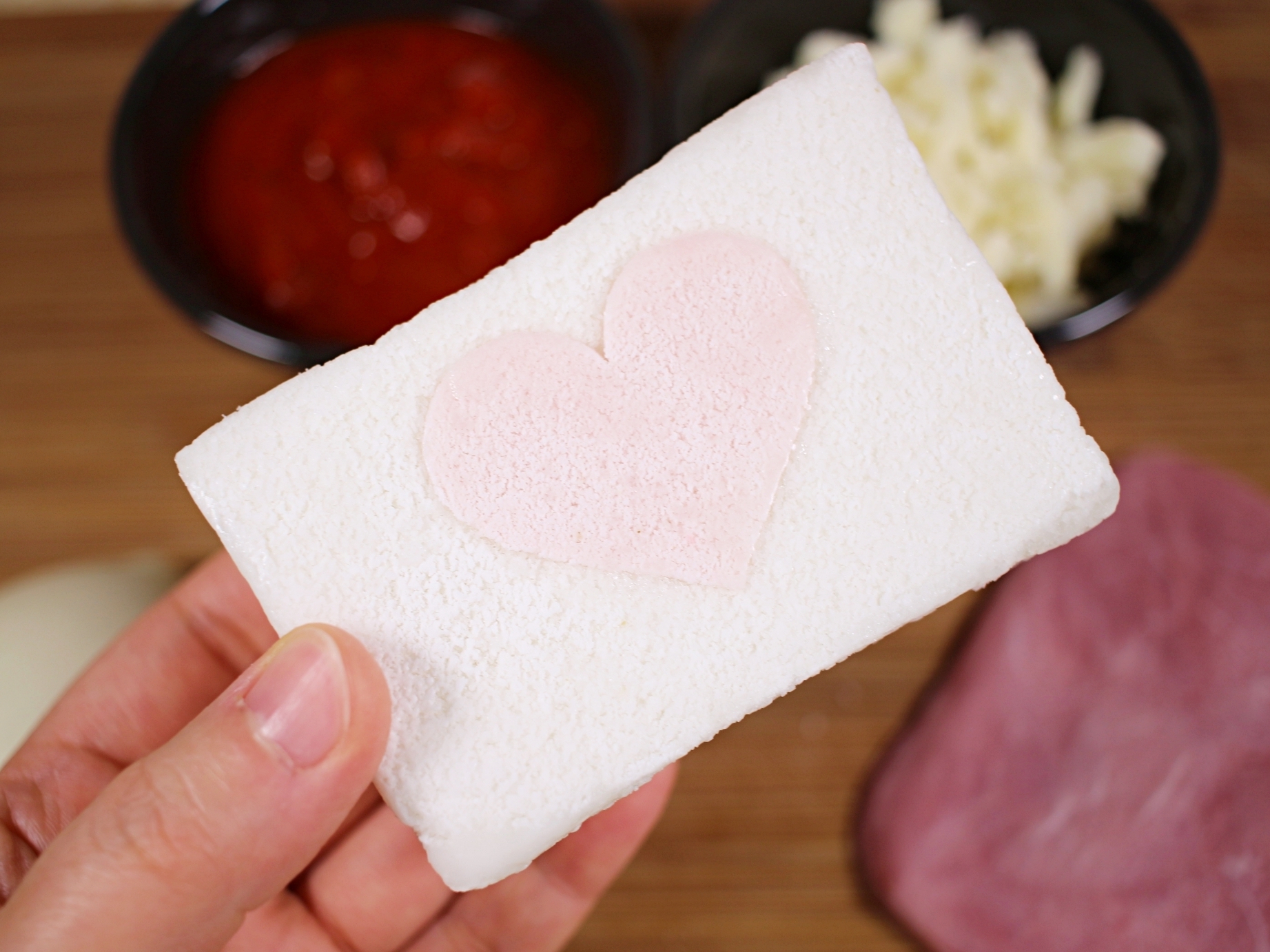 재료는 백설기, 양파, 햄, 토마토소스, 치즈 준비했어요.