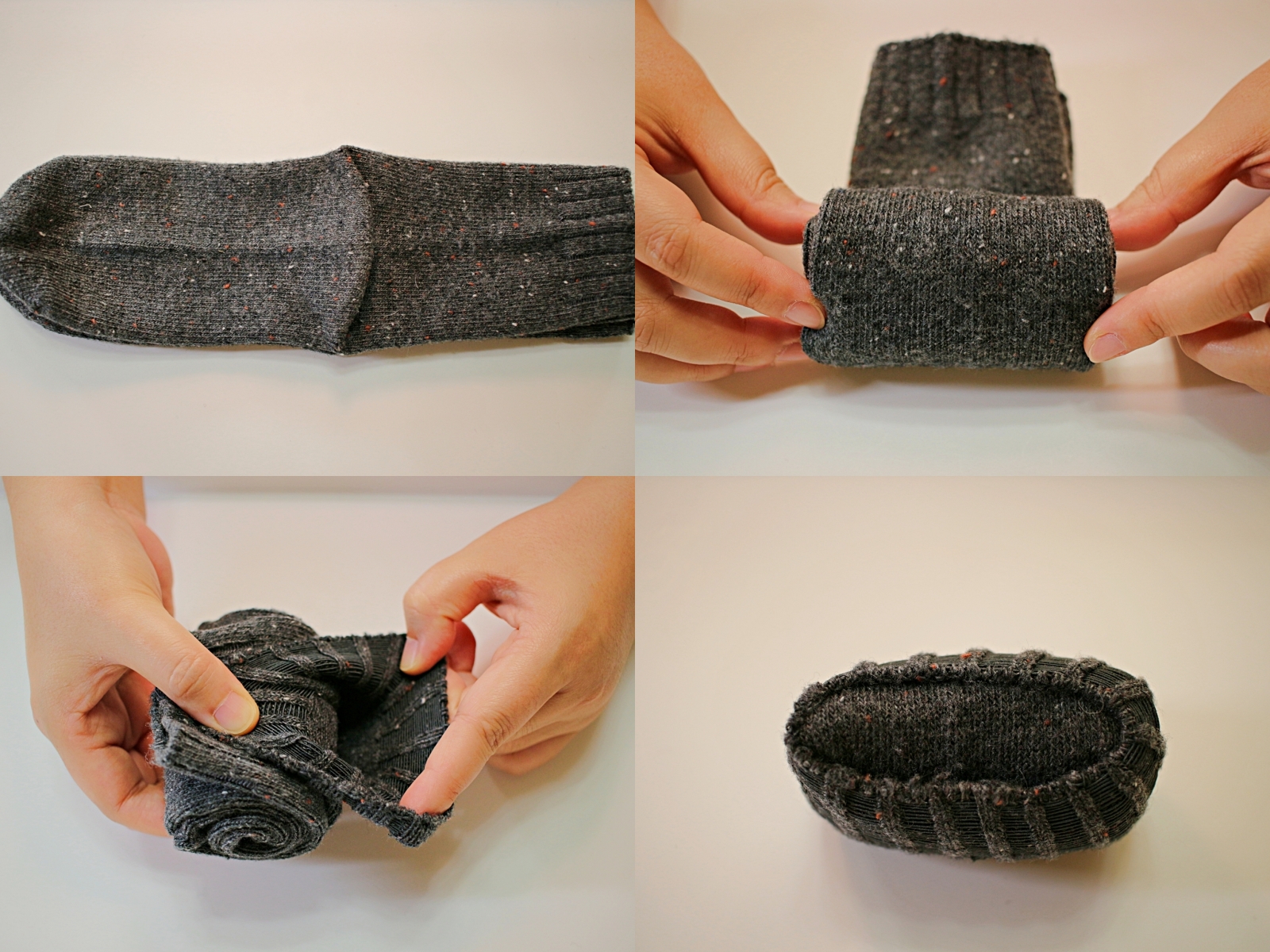 양말을 동그랗게 말아서 원통형으로 정리하는 방법이에요.