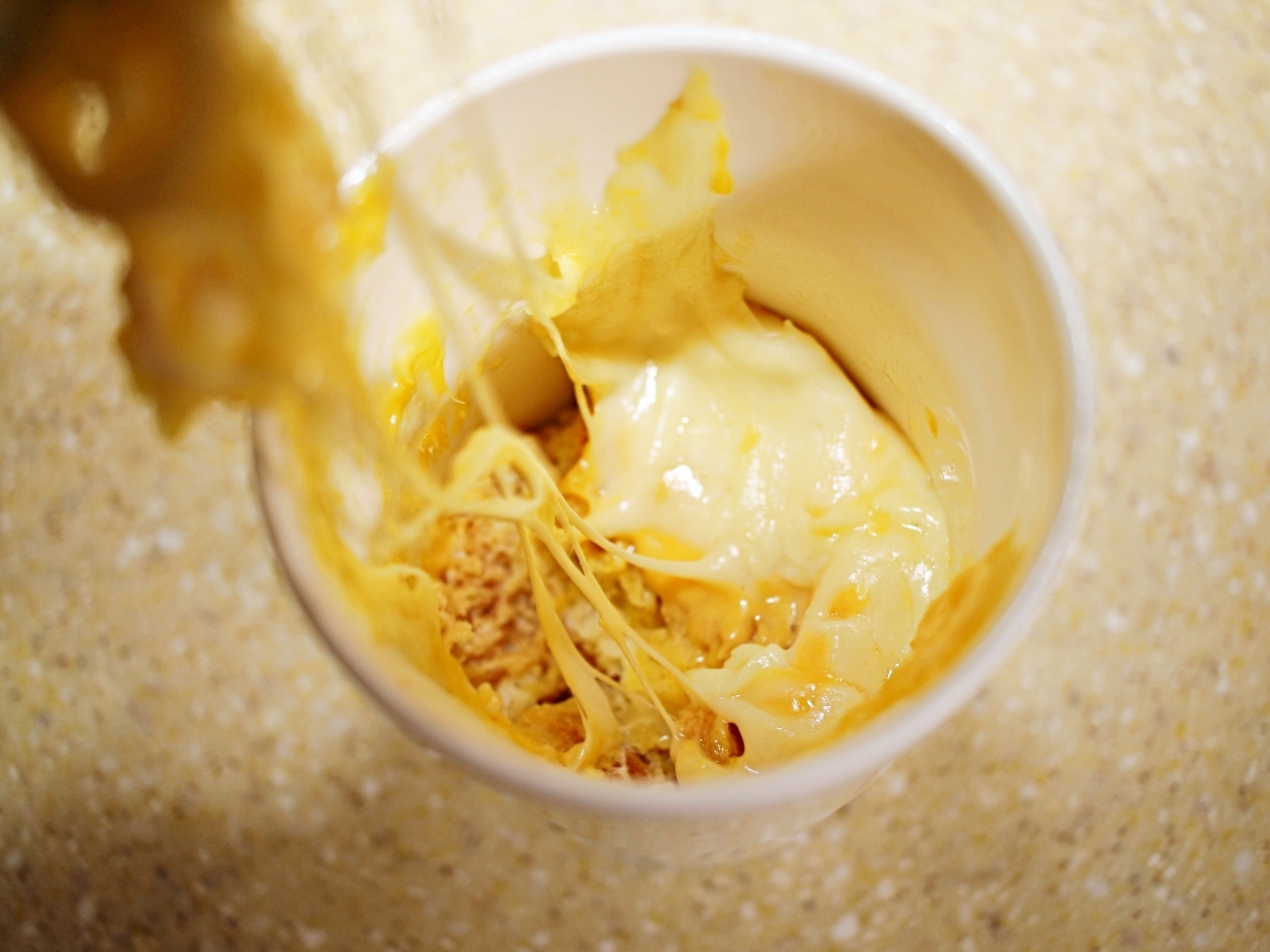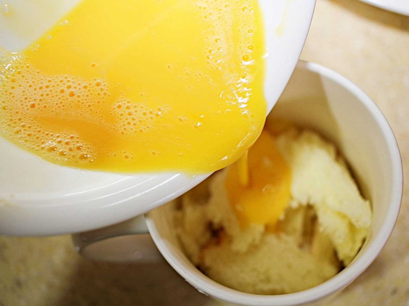 계란을 곱게 풀어서 머그컵에 부어요.