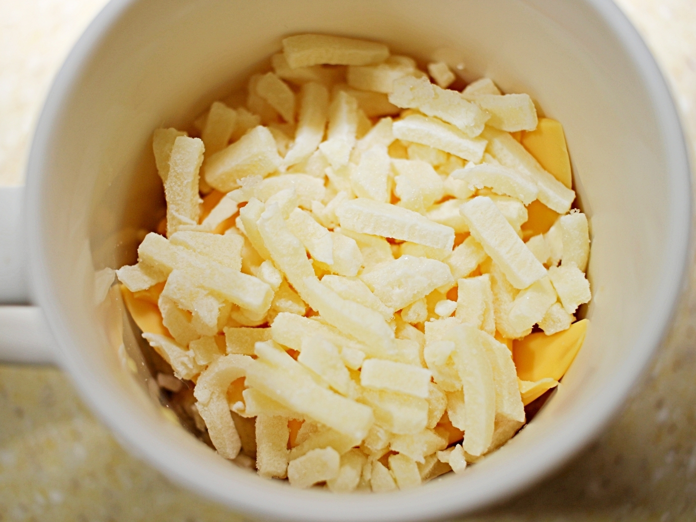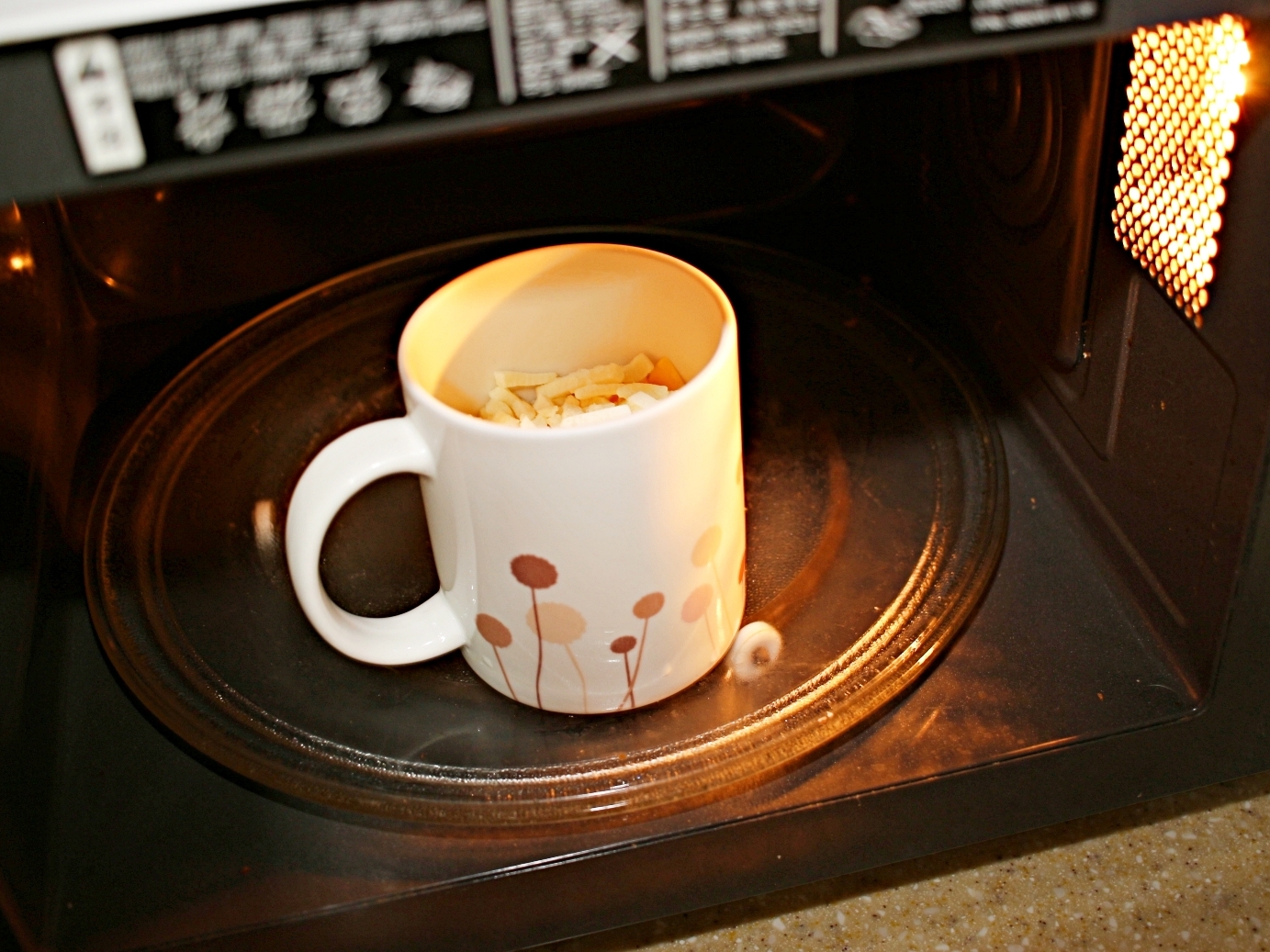 이상태로 전자레인지에 넣고 치즈가 녹을 때까지 돌려주세요.