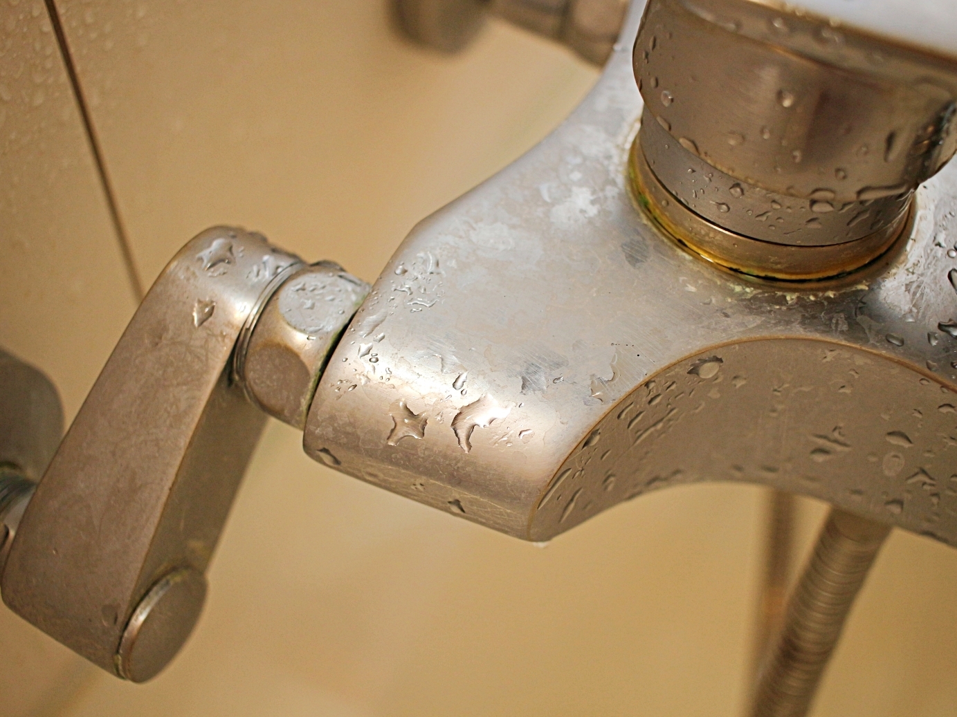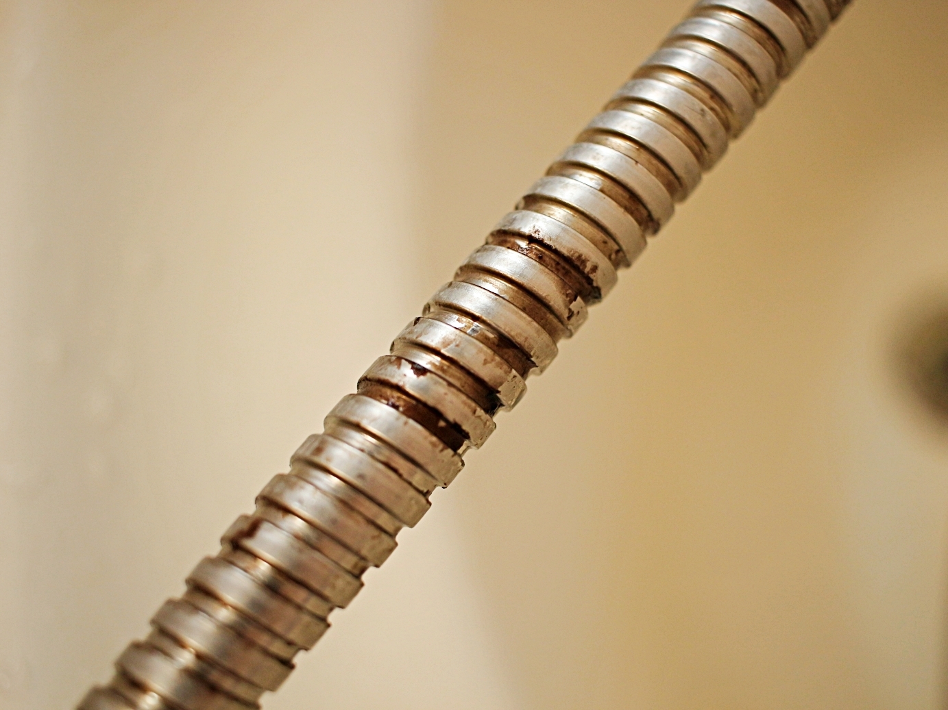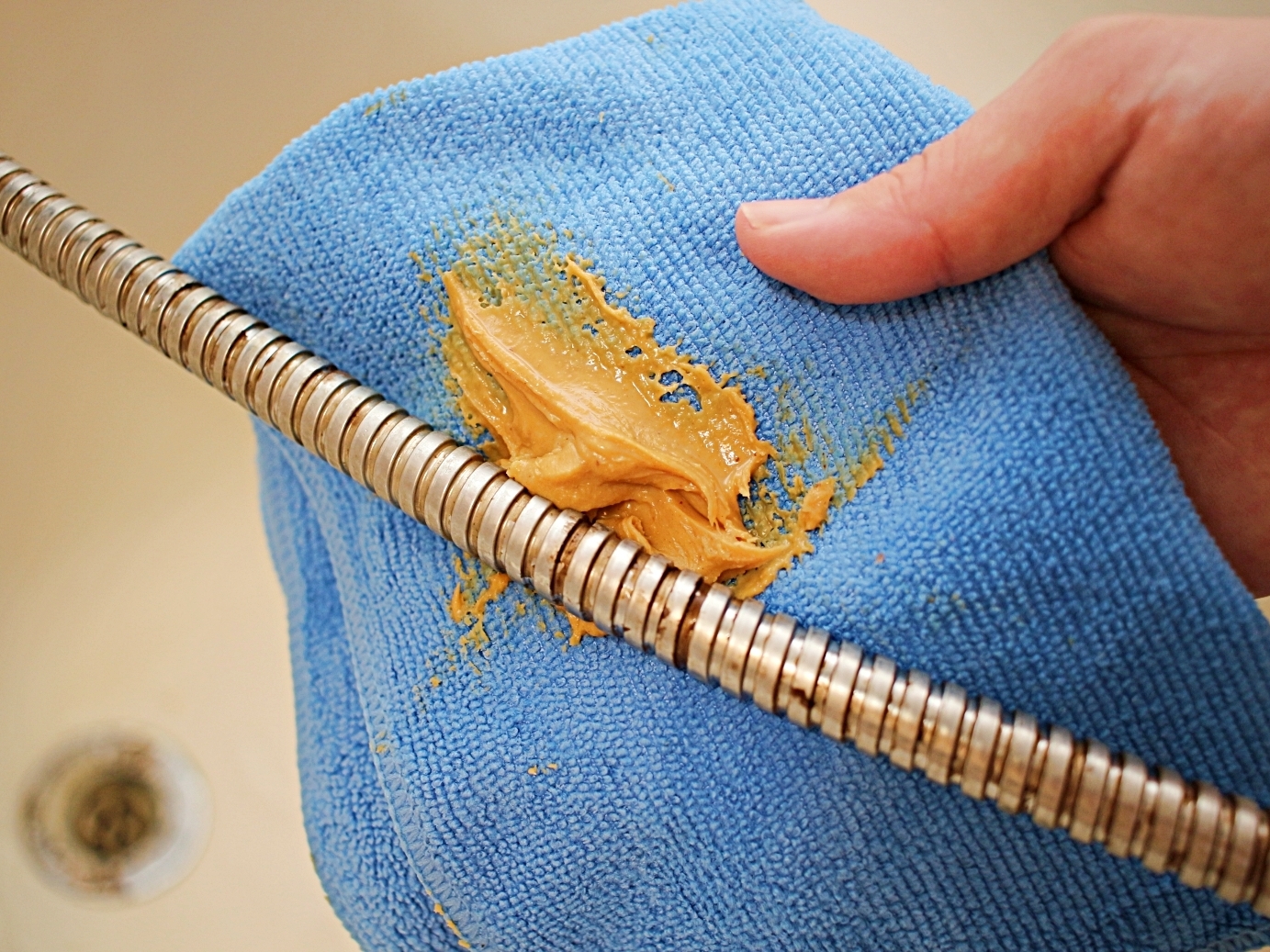 샤워기줄을 꼼꼼하게 닦아주세요.