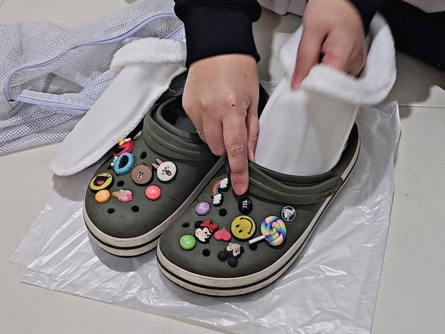 순식간에 여름크록스가 겨울크록스로 변신했어요.