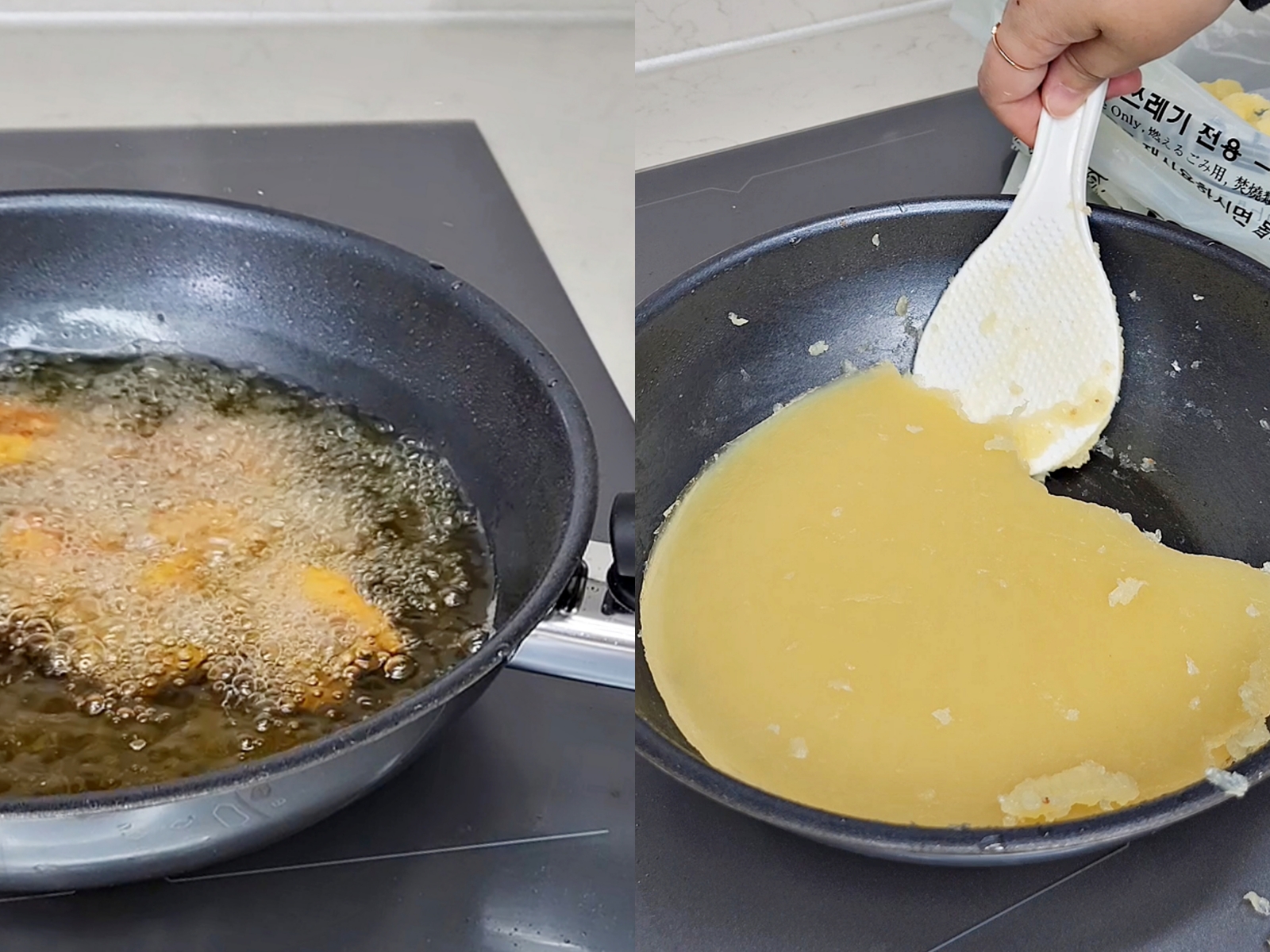 튀김요리 끝나고 기름이 아직 따뜻할 때