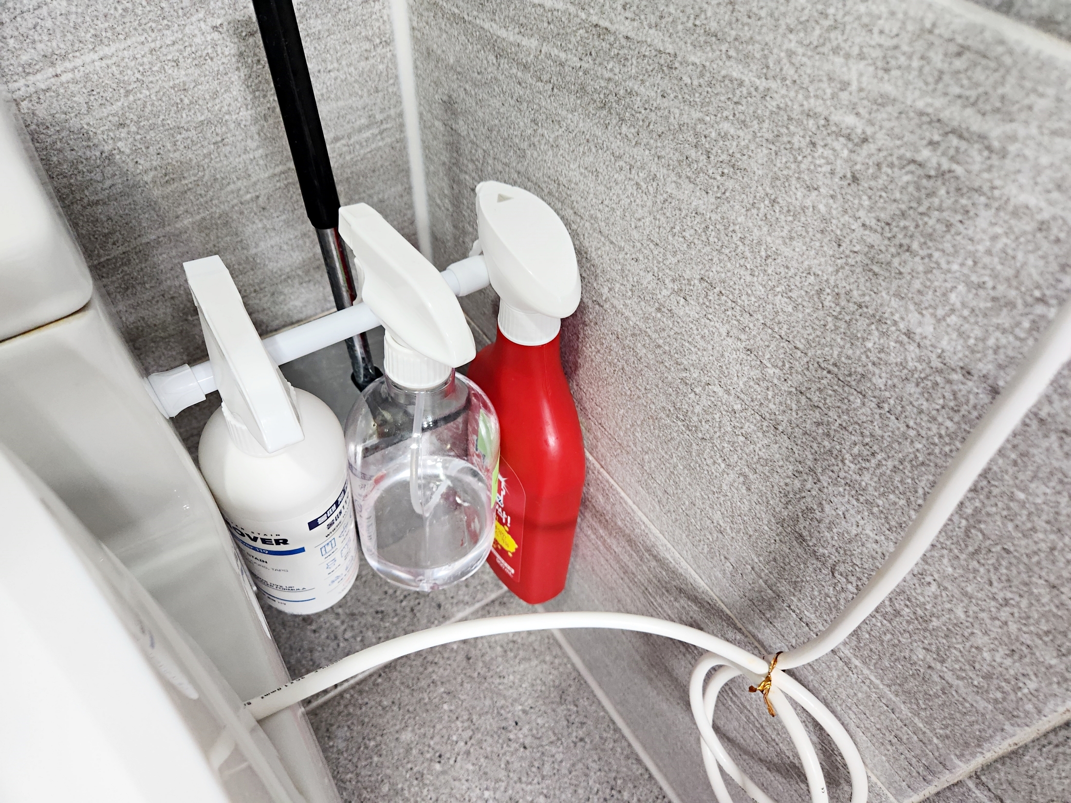 압축봉에 청소도구들을 하나씩 걸어봤는데