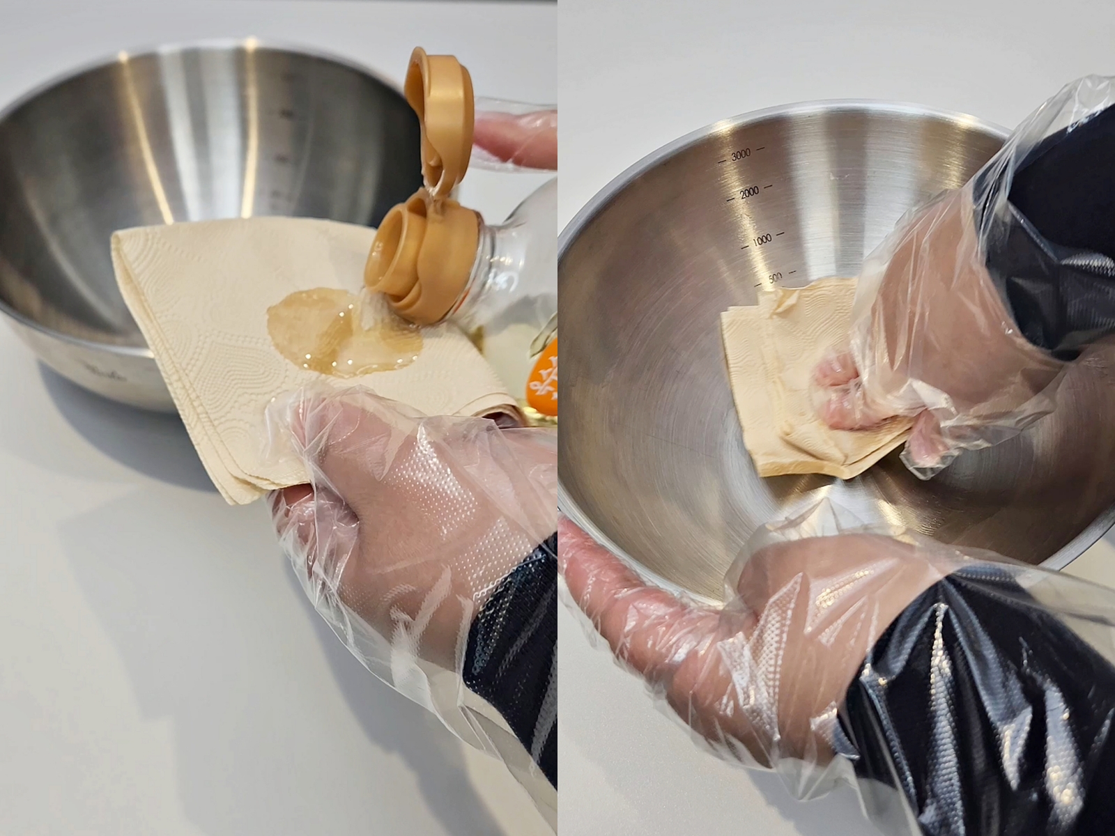 키친타월에 기름 묻혀 닦아내고 세제 써서 다시 씻고…