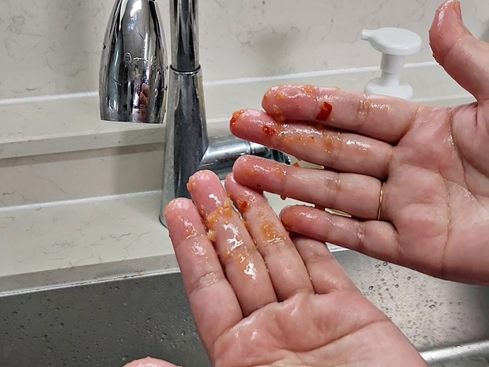 김치 양념이나 고기 기름 묻은 손으로