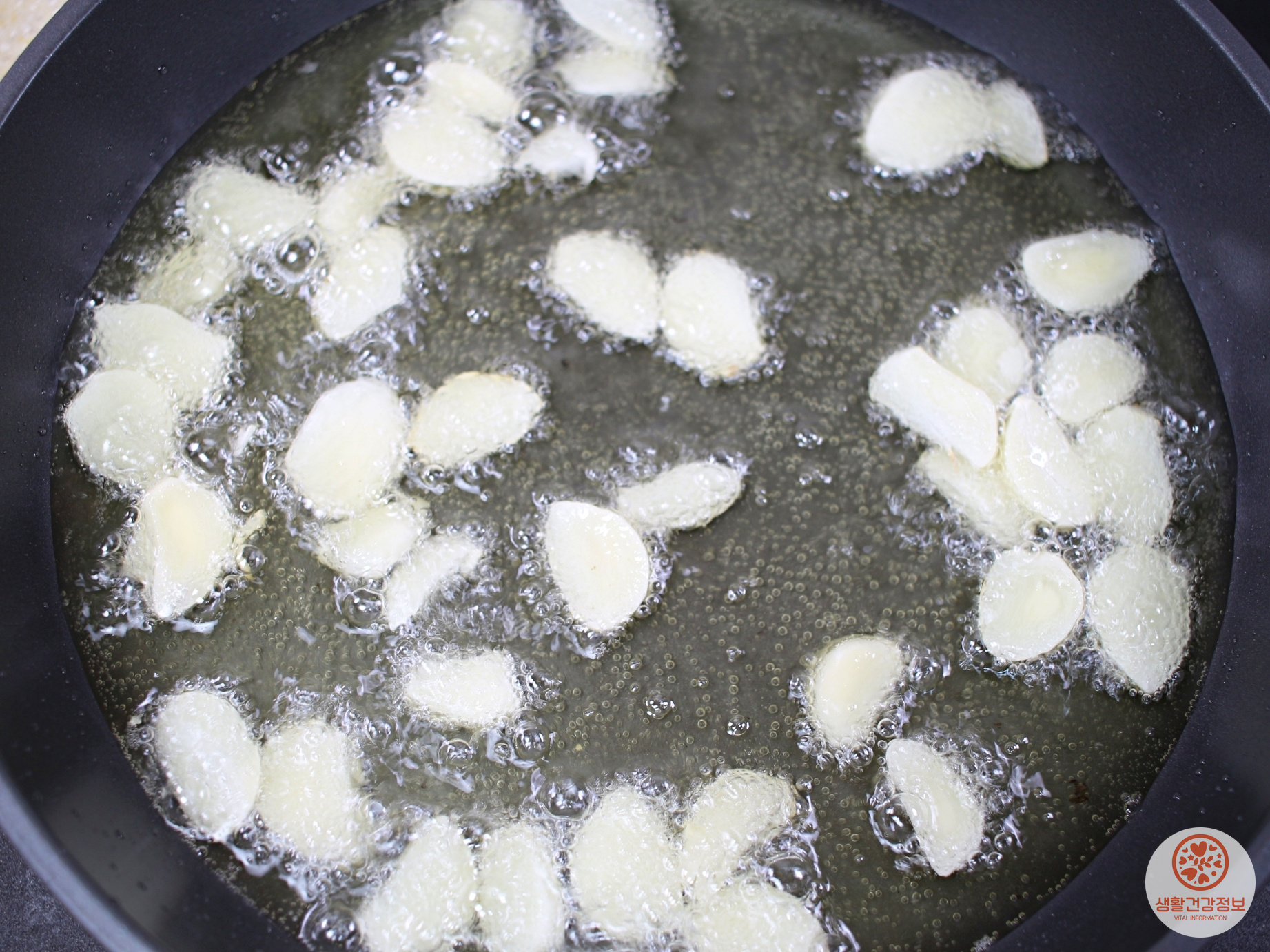 마늘은 얇게 슬라이스 해주세요.