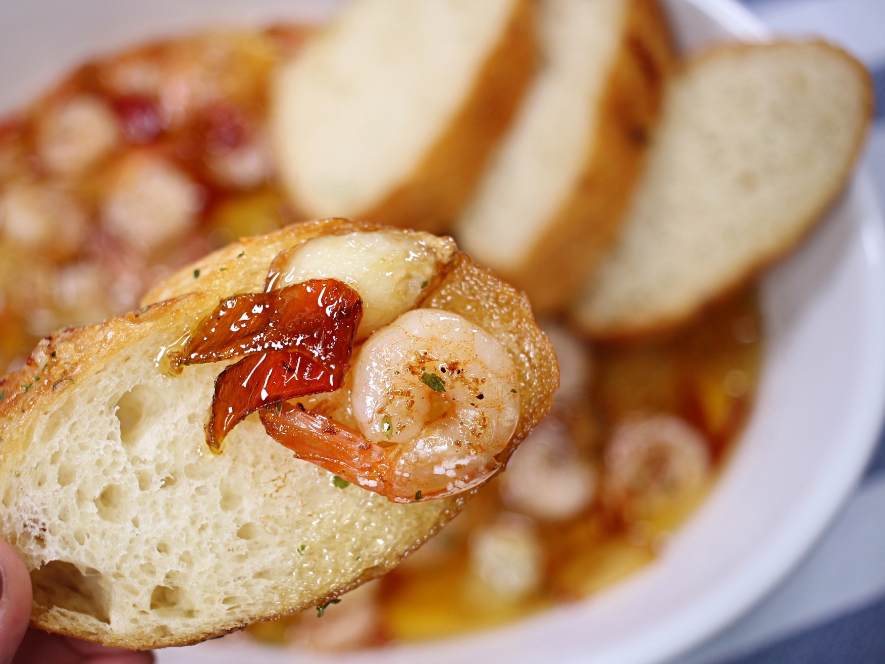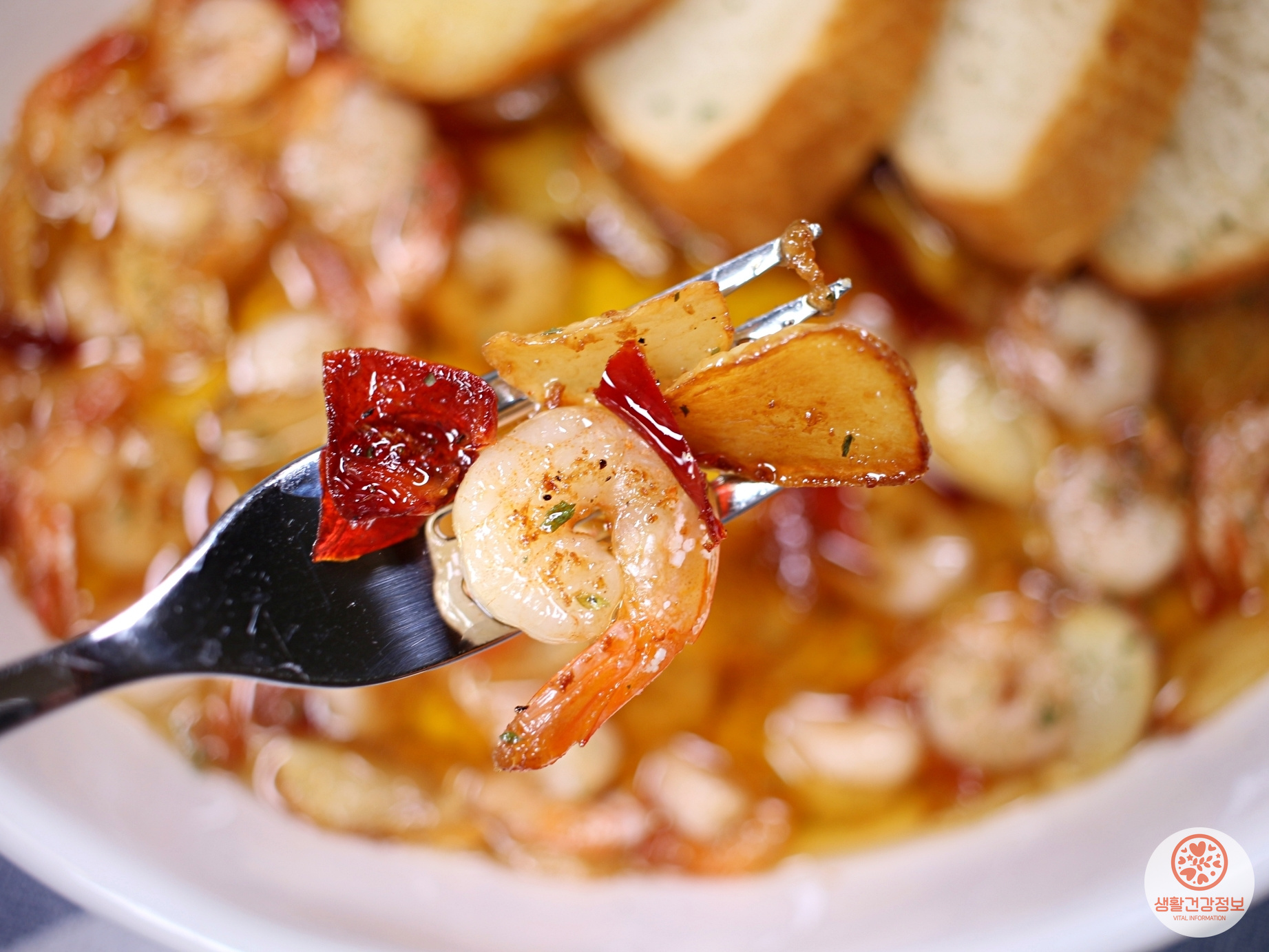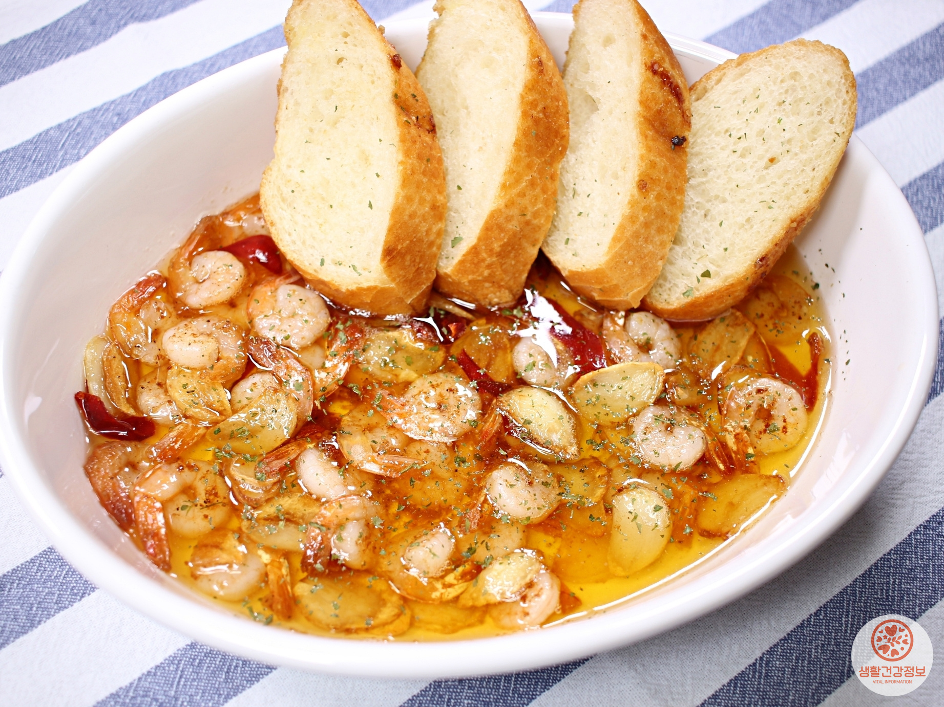 감바스에 바삭하게 구운 바게트까지 더하면 완벽 그 자체!