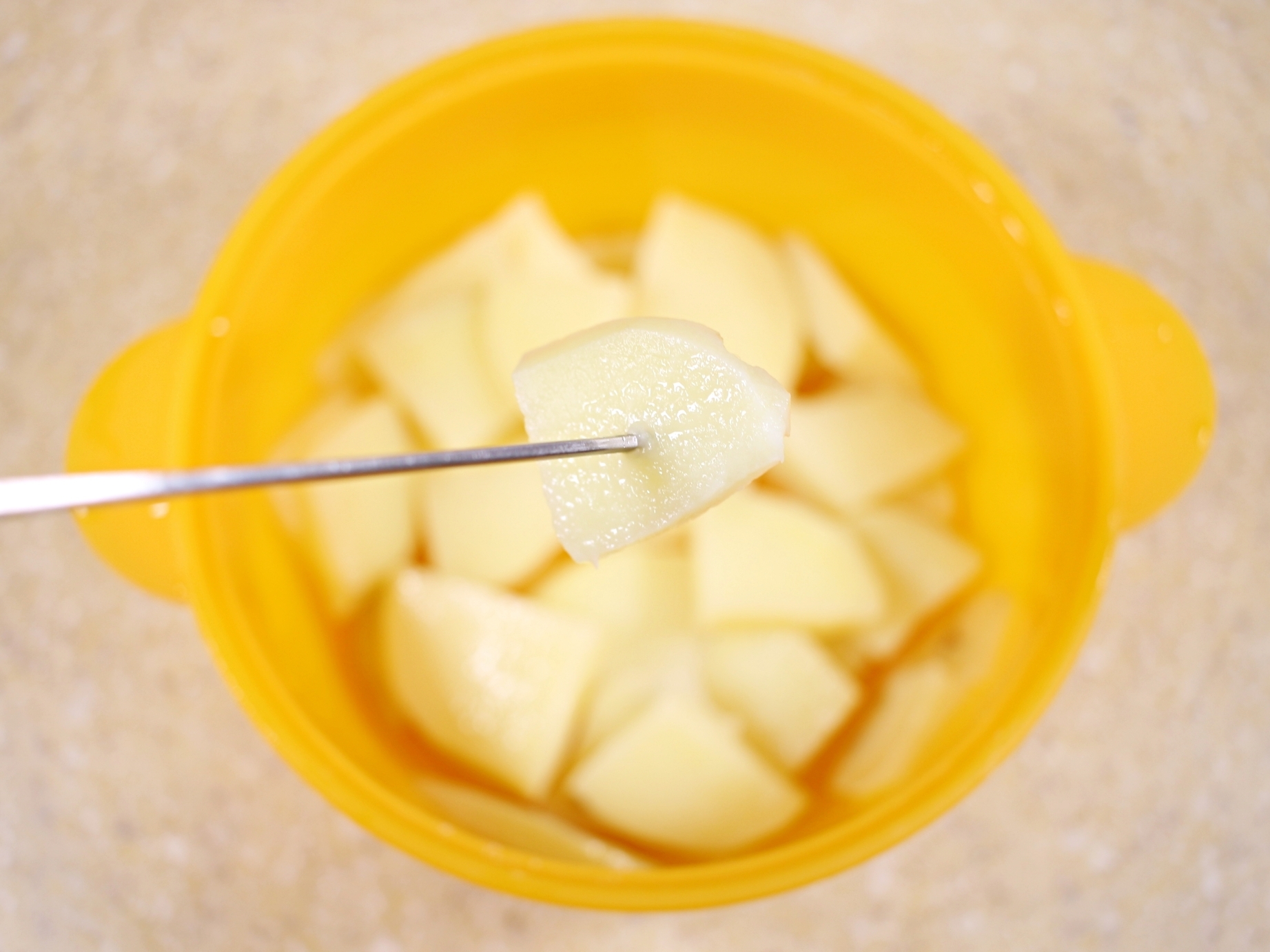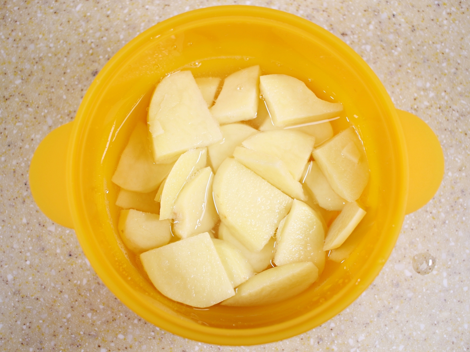썰어둔 감자를 전자레인지 용기에 담고