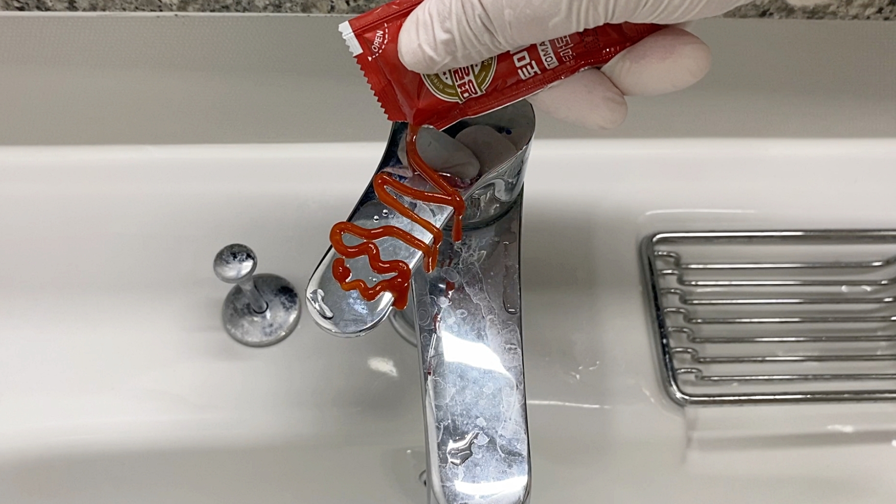 일회용케첩을 수도꼭지에 뿌리면 벌어지는 일!