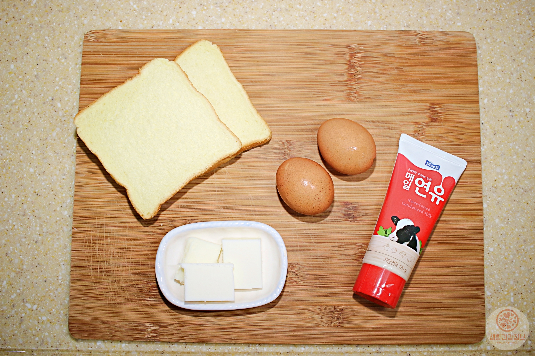 재료는 식빵, 계란, 버터, 연유 준비했어요.