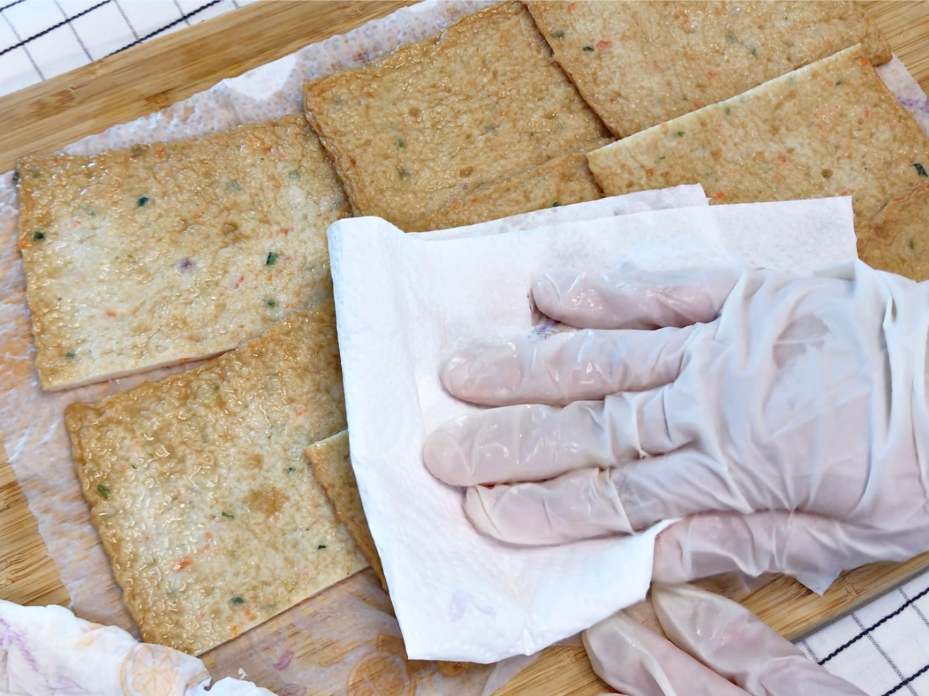 기름기 뺀 어묵을 먹기 좋은 크기로 썰고
