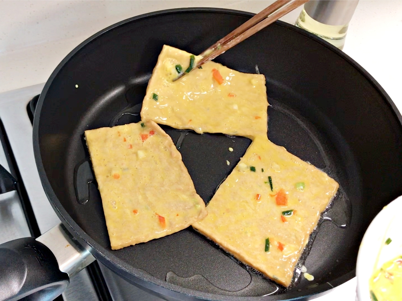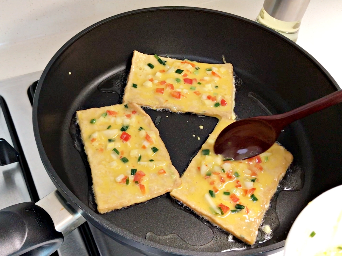 그다음 계란옷 입혀서 후라이팬에 부치면 돼요.